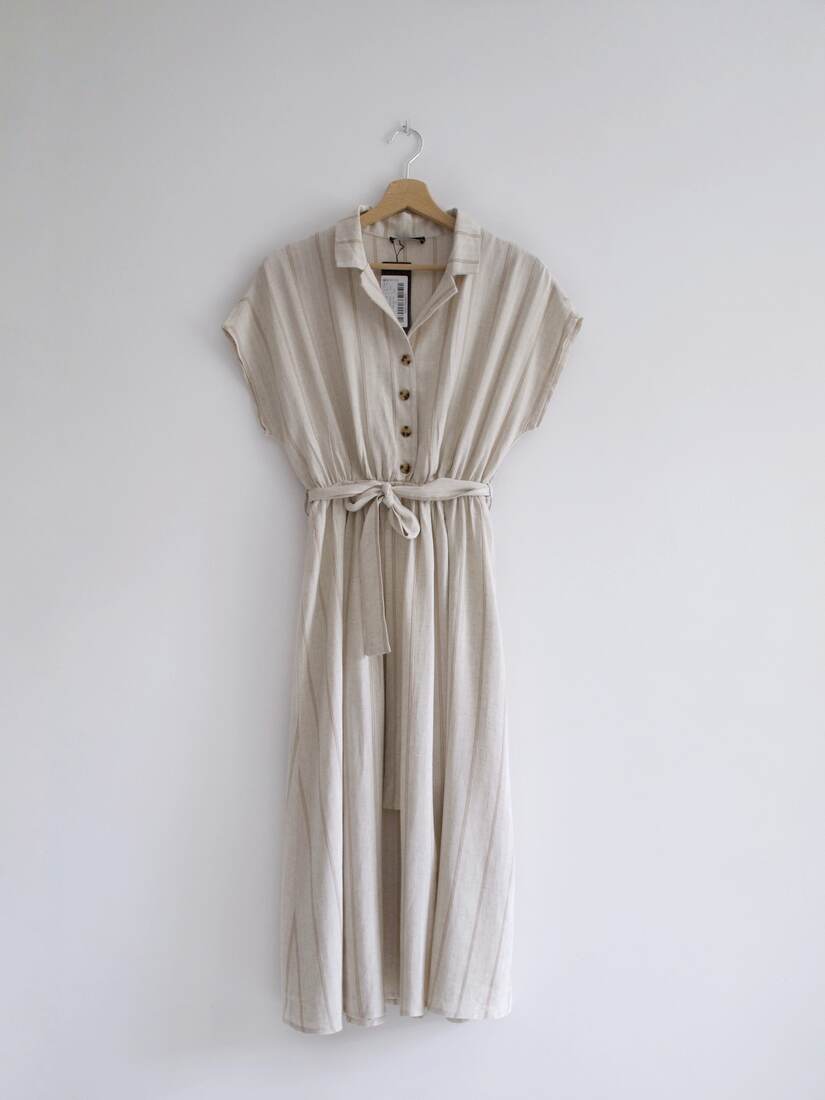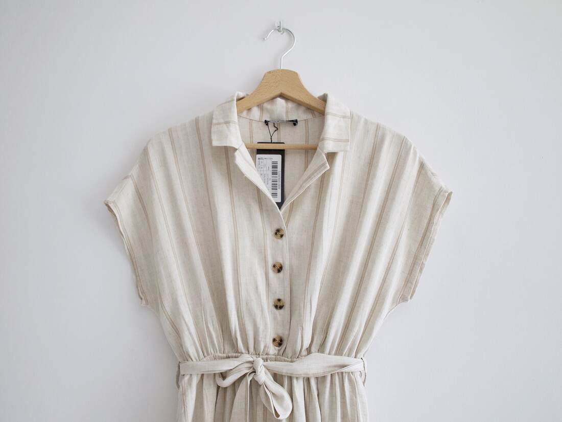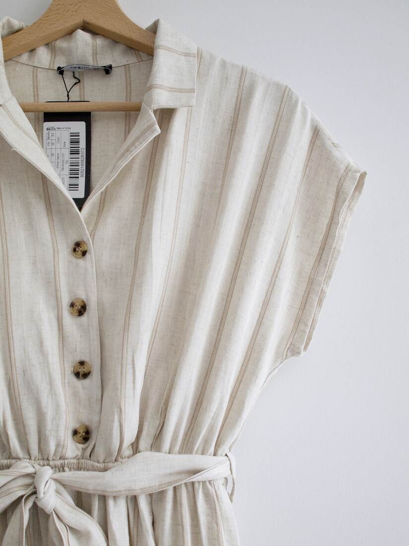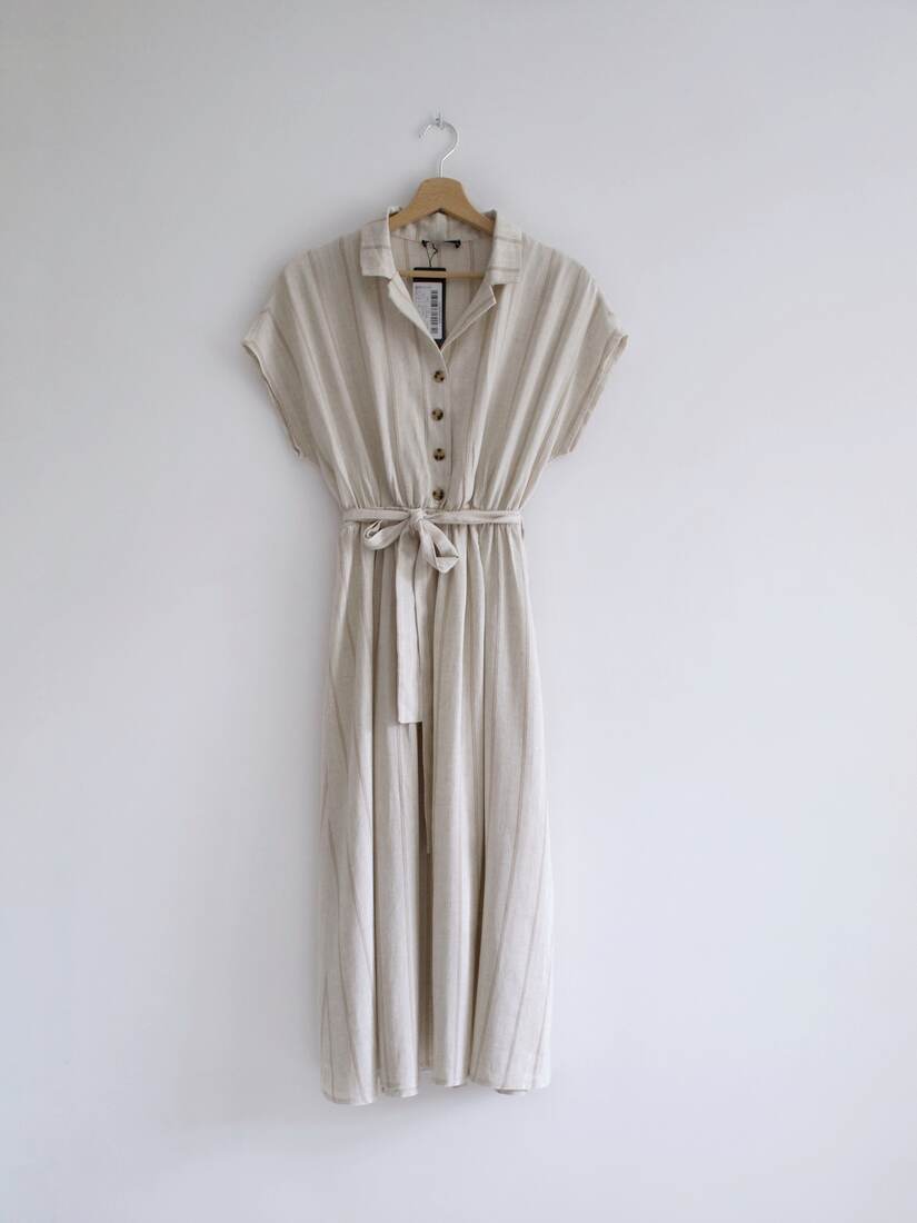 Letnia sukienka wykonana z wiskozy z dodatkiem lnu. Rozmiar z metki 34, polecam na XS-S-mniejsze M. Nowa, z kompletem metek.