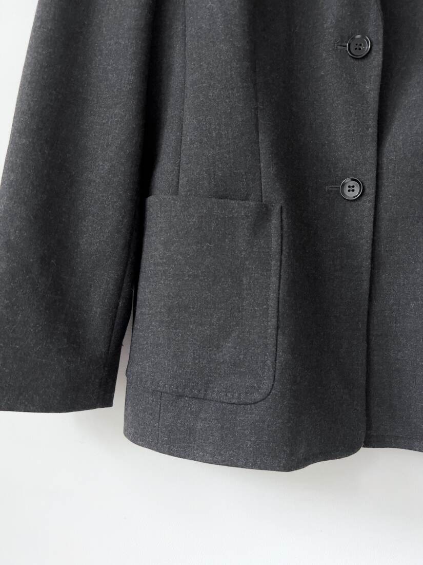 Prosta wełniana marynarka.Zapinana na dwa guziki, z kieszeniami. Rozmiar z metki 40, bez wad.