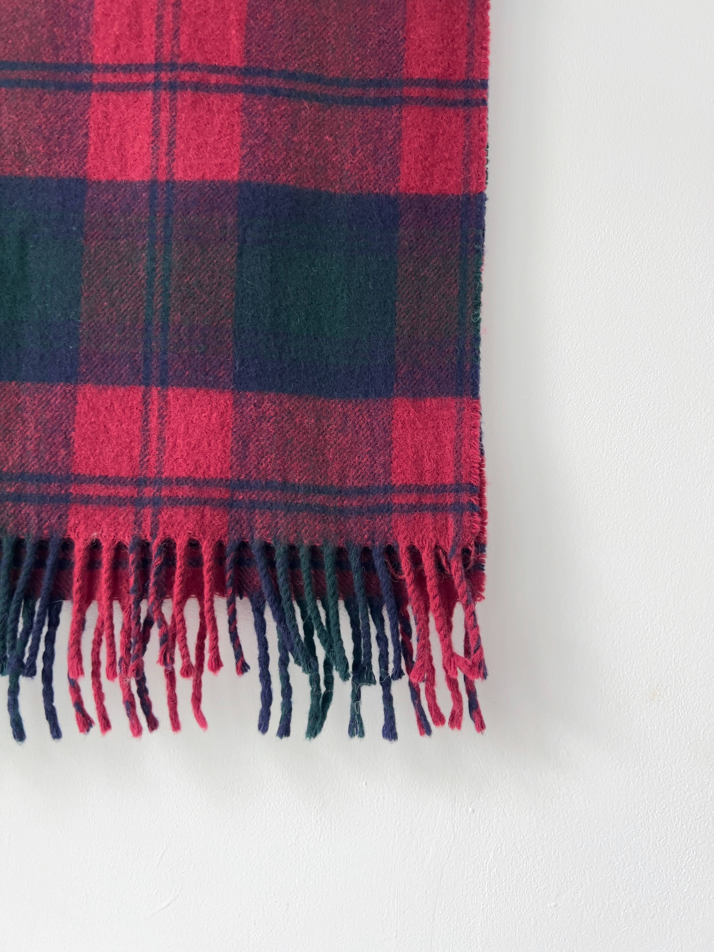 Szalik w kratę. Brak metki ze składem, na 100% jest to wełna bez domieszek. Bez wad.