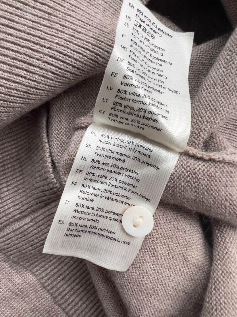 Przepiękny wełniany sweter brytyjskiej marki WoolOvers. Rewelacyjny skład 70% merino wool, 30% kaszmir, jest miękki i milutki w dotyku. Rękawy i dół wykończone dłuższym ściągaczem. Rozmiar z metki S, idealny stan.