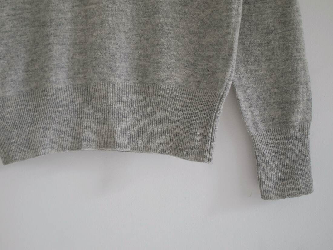 Minimalistyczny kaszmirowy sweter o pudełkowym kroju. Sweter bardzo miękki i przyjemny, ma dwie małe zacerowane dziurki, nie widoczne w noszeniu, poza tym brak mankamentów. Wymiary poniżej.