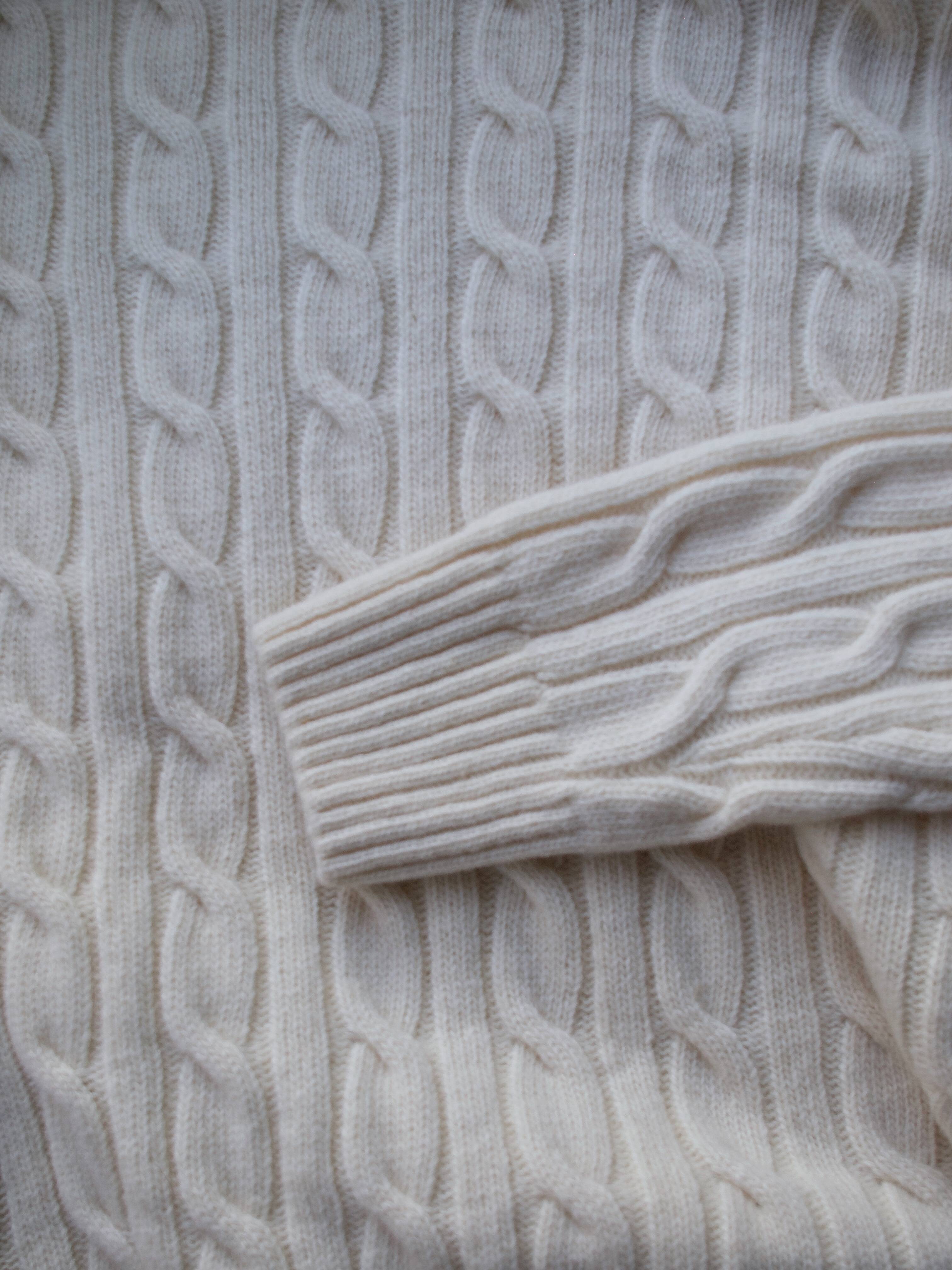 Sweter jest wykonany w 100% z wysokogatunkowej miękkiej wełny dziewiczej, made in UK. Brak etykiety z rozmiarem, ma nieco obniżone ramiona, będzie dobry na m/l, lub jako overize. Modelka ma 175 cm wzrostu. Idealny stan.