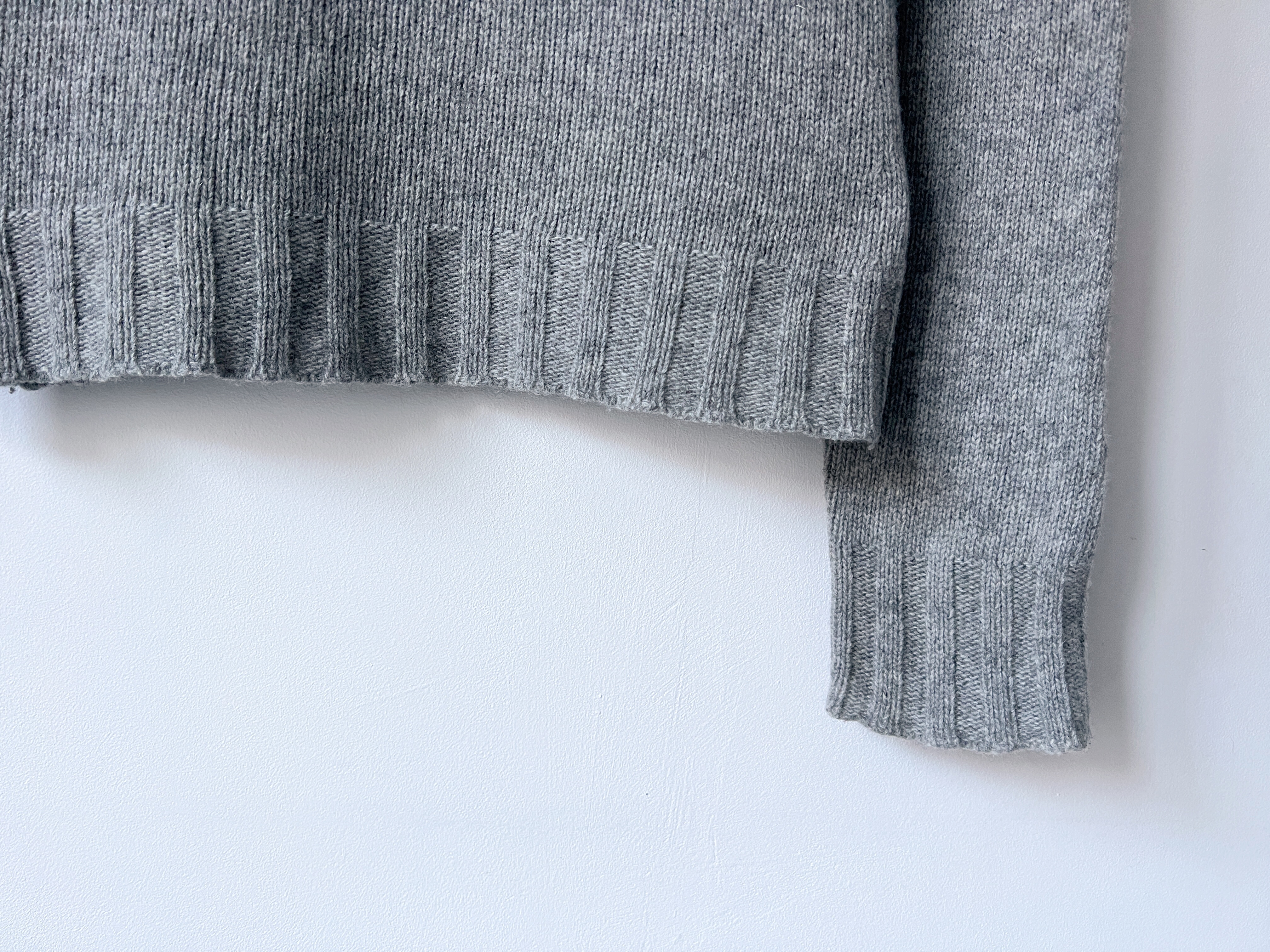 Minimalistyczny kaszmirowy sweter o pudełkowym kroju. Sweter bardzo miękki i przyjemny, ma dwie małe zacerowane dziurki, nie widoczne w noszeniu, poza tym brak mankamentów. Wymiary poniżej.
