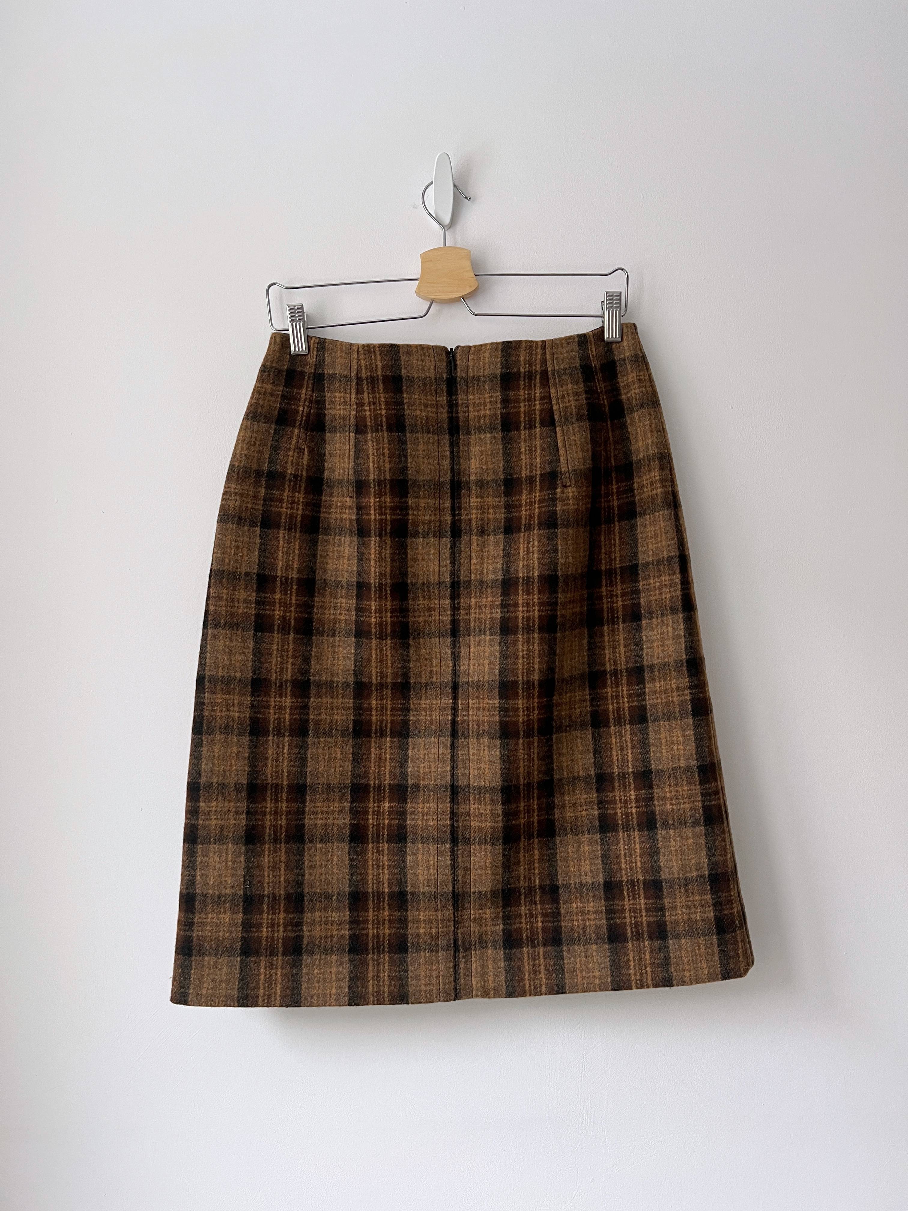 Wełniana spódnica z rozporkiem. Z tyłu zapinana na zamek.