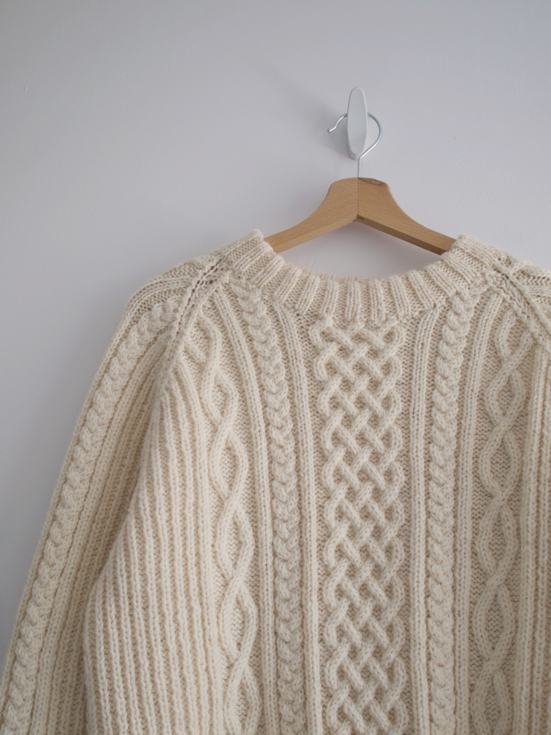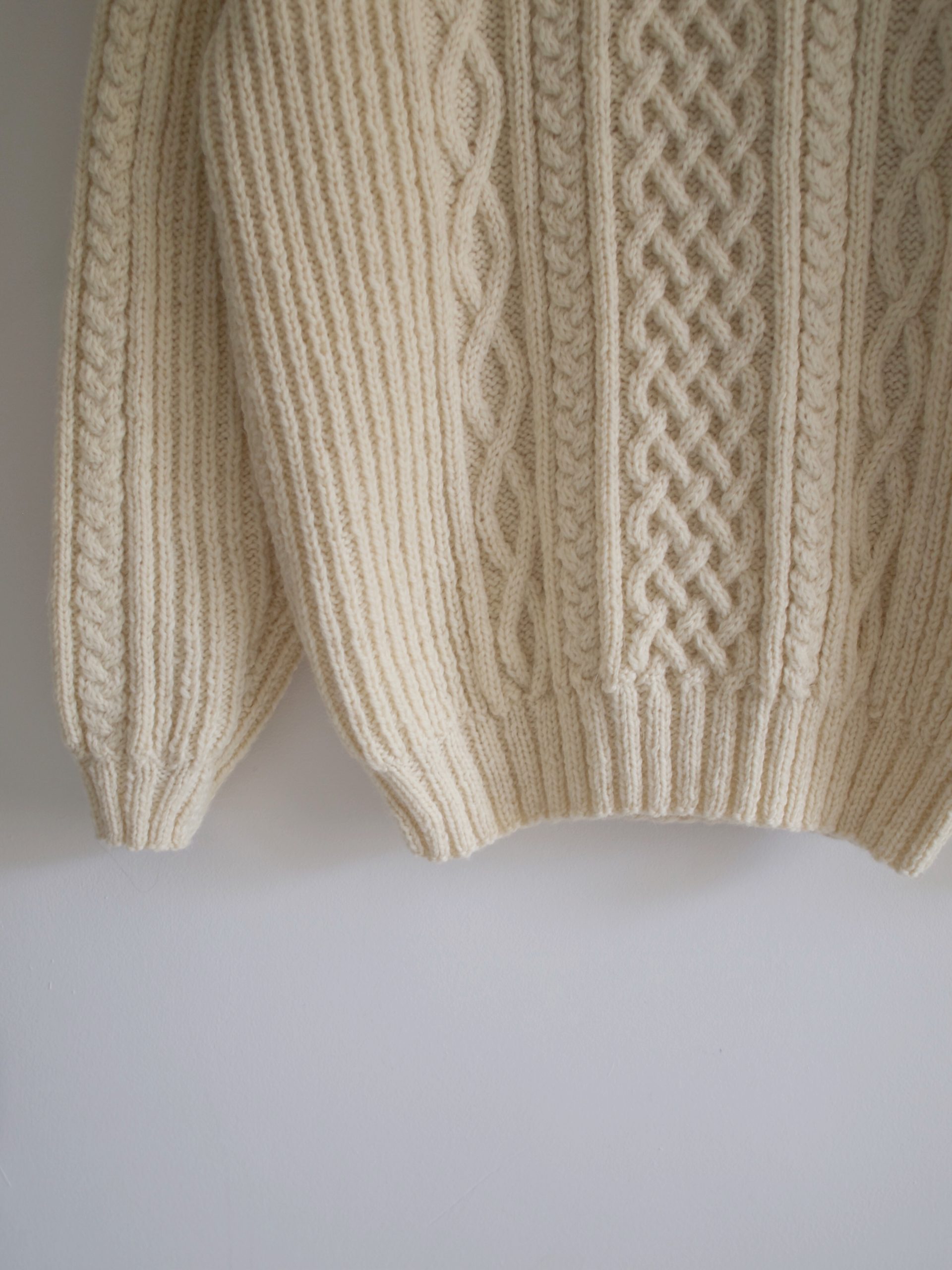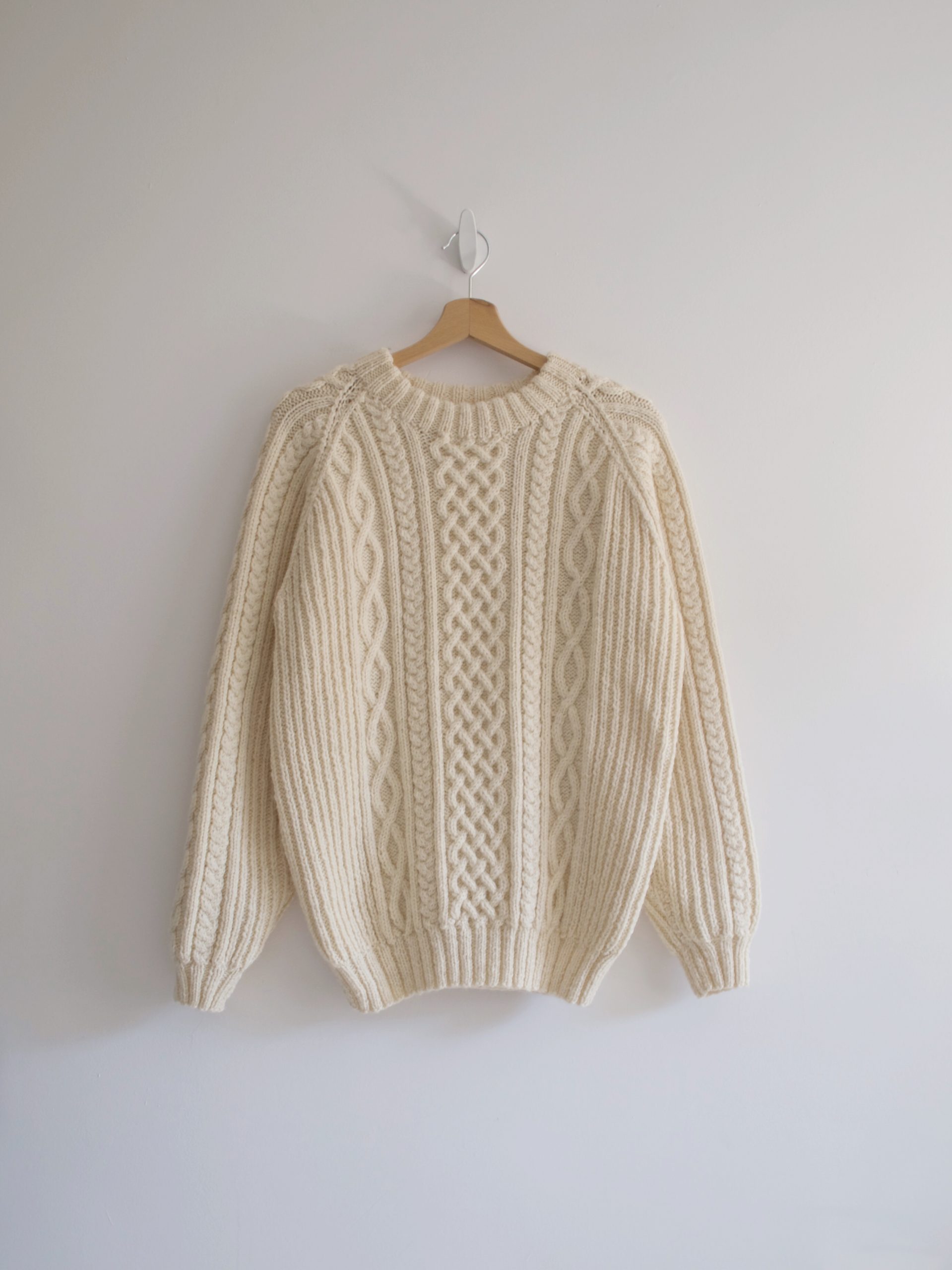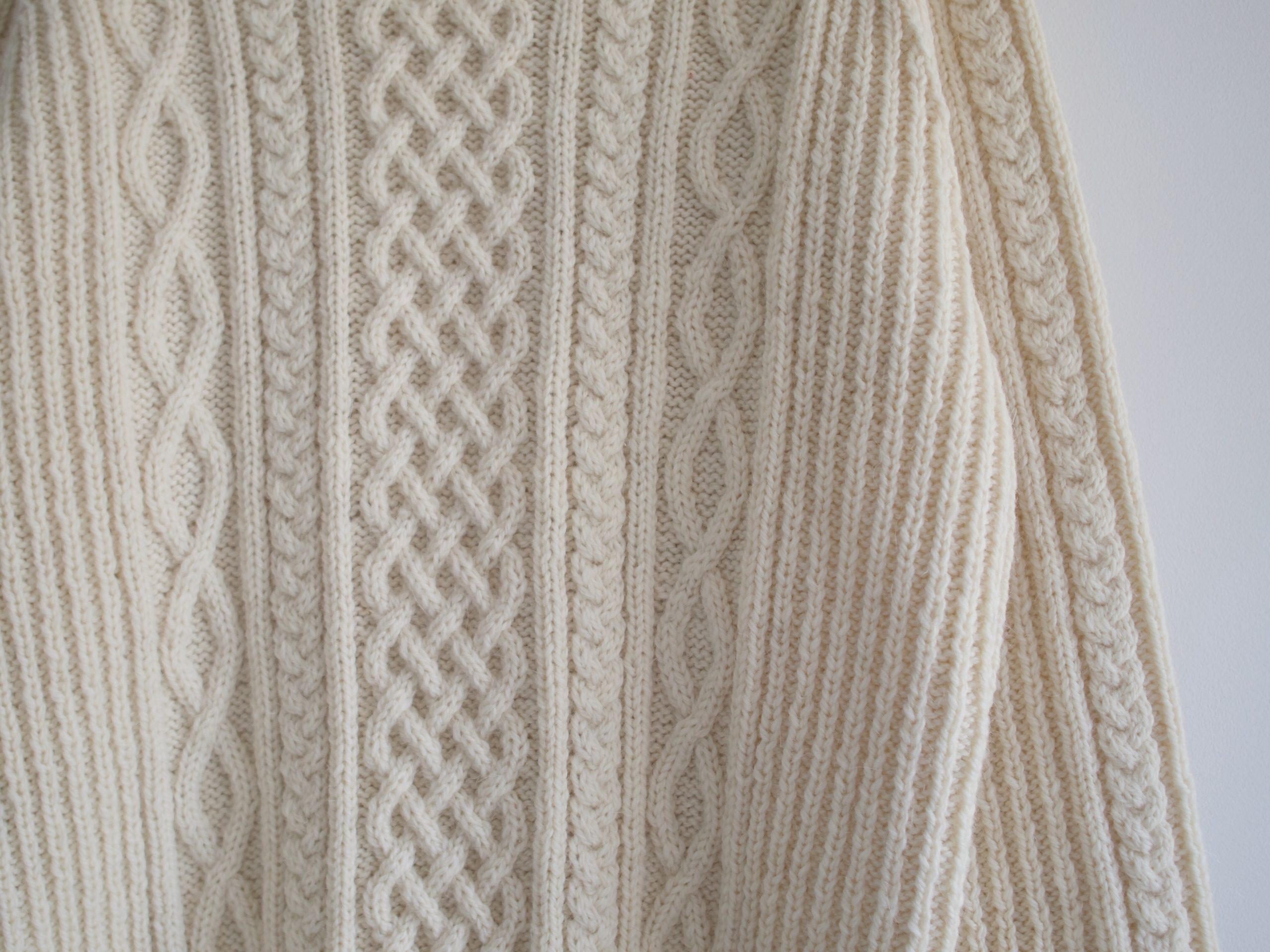 Sweter o grubym splocie, w 100% wykonany z wełny. Rozmiar z metki: brak Skład: brak metki, 100% wełna, może gryźć Stan: idealny Szerokość w klatce 56 cm Długośćcałkowita 65 cm