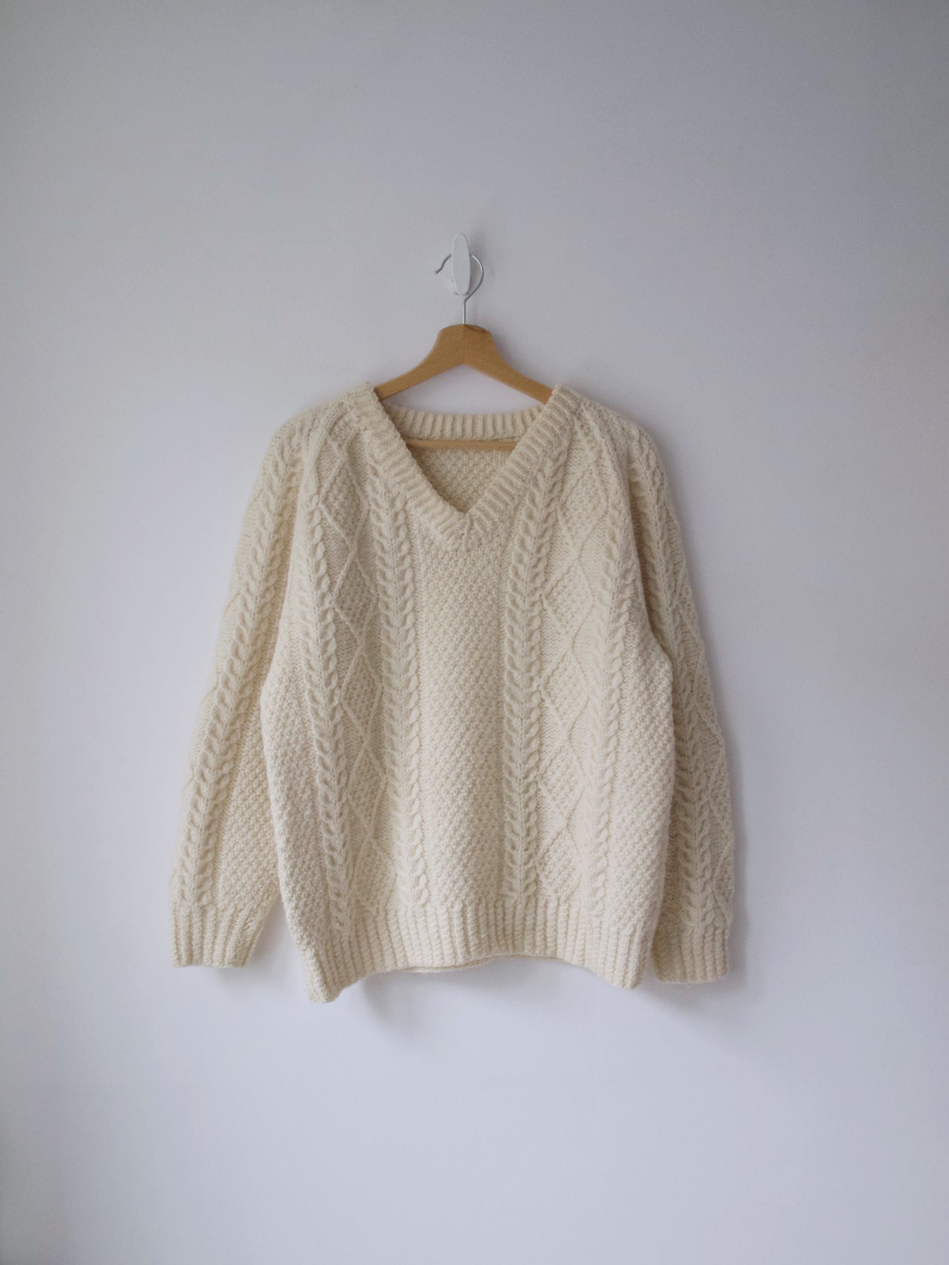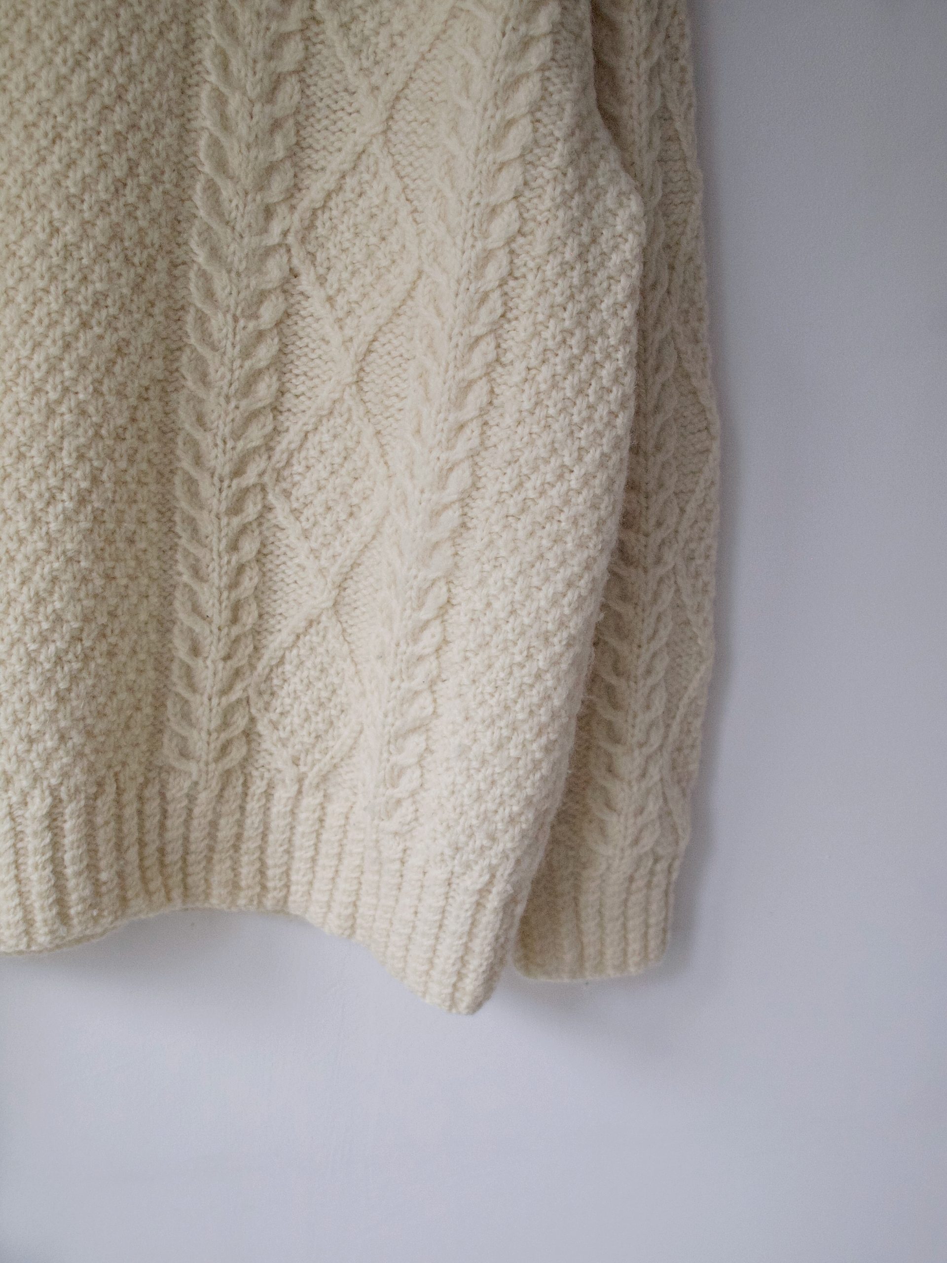 Sweter jest wykonany w 100% z wysokogatunkowej miękkiej wełny dziewiczej, made in UK. Brak etykiety z rozmiarem, ma nieco obniżone ramiona, będzie dobry na m/l, lub jako overize. Modelka ma 175 cm wzrostu. Idealny stan.