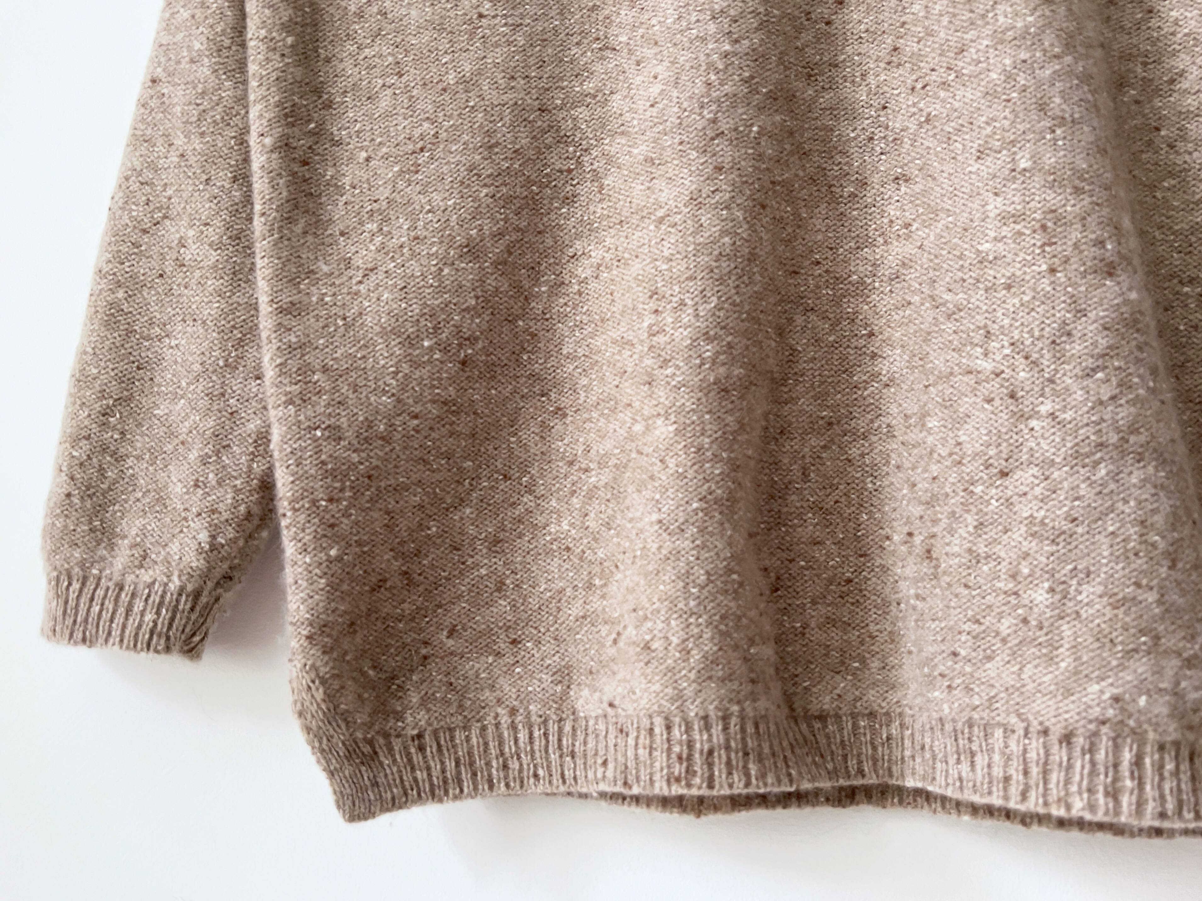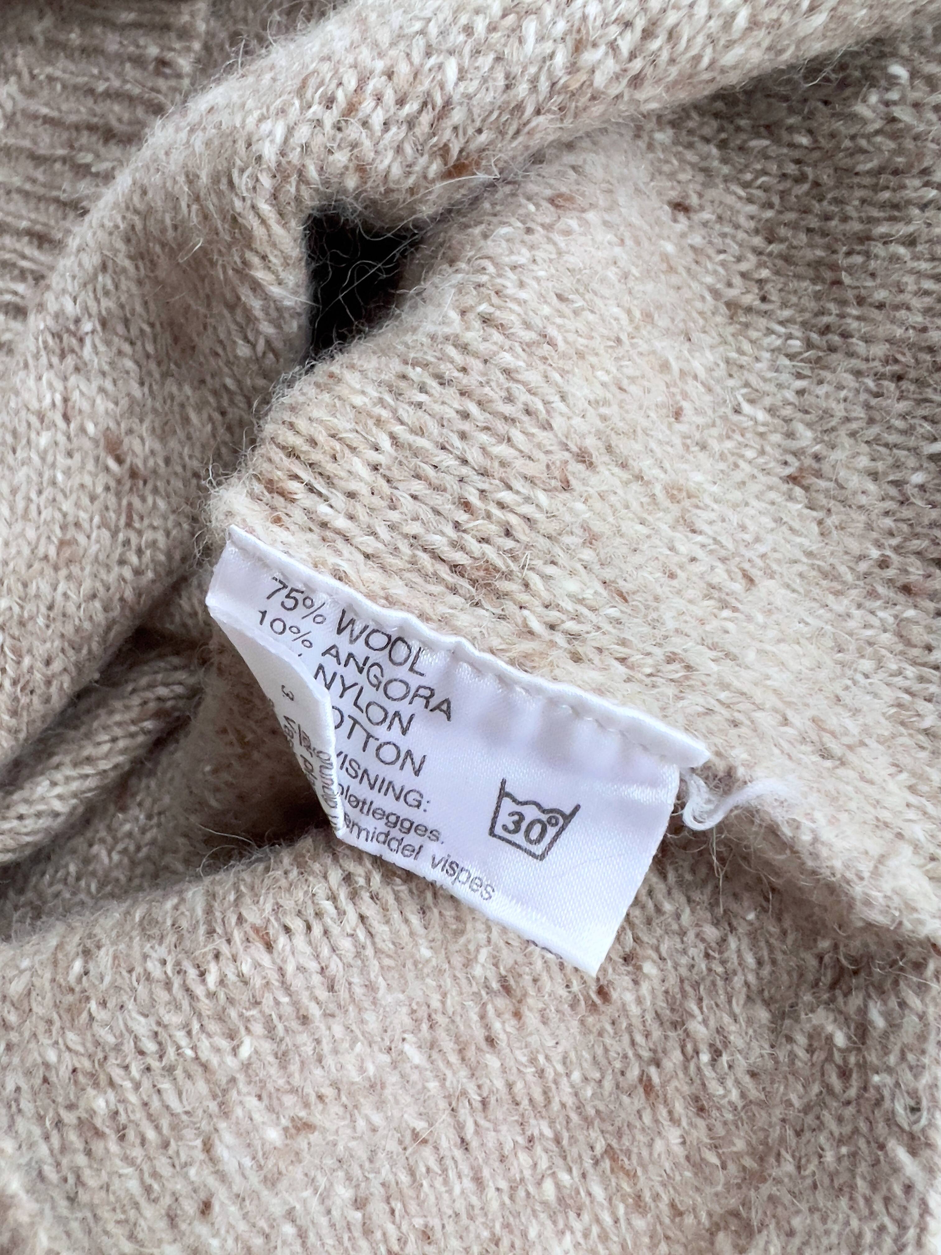 Sweter vintage w kolorze beżowego melanżu. Wykonany z wełny z dodatkiem angory. Rozmiar z metki M, luny fason. Idealny stan.