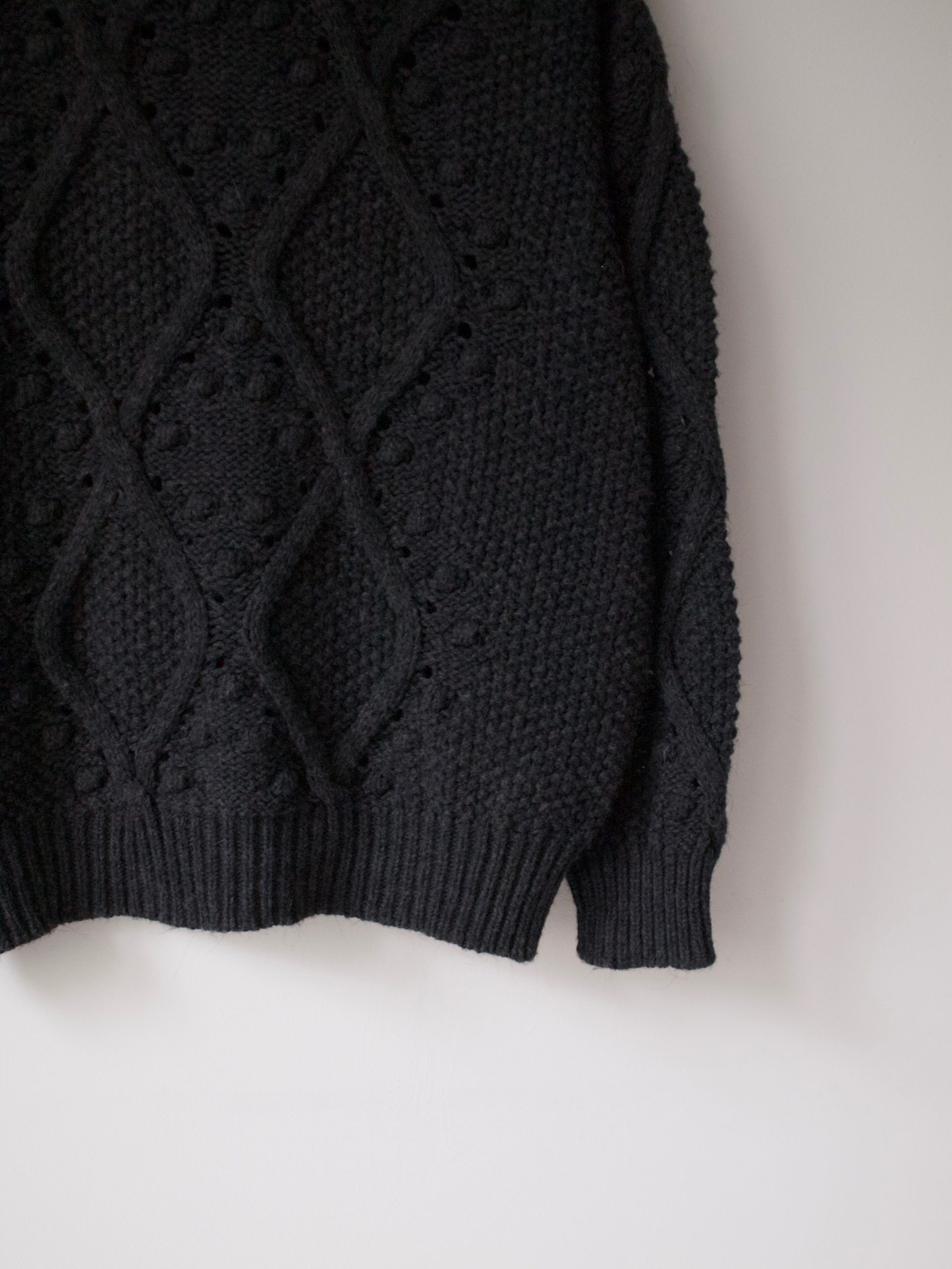 Sweter vintage ze zdobieniem. Brak metki z dokładnym składem, ale jest to angora, może nawet w 100 %. Sweter bardzo miękki i nie gryzie. Ma obszerniejsze ramiona, zdjęcie na xs-ce.