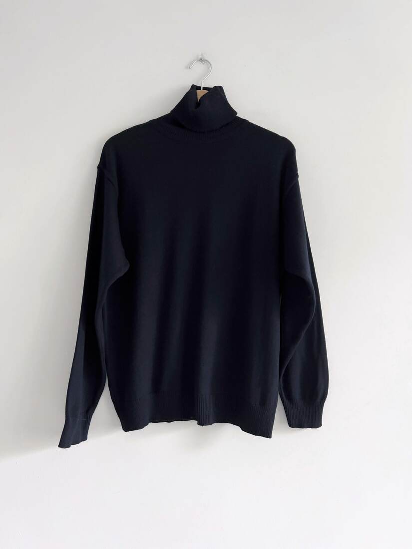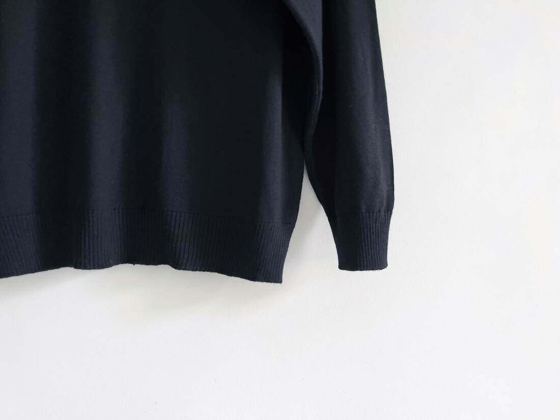 Minimalistyczny kaszmirowy sweter o pudełkowym kroju. Sweter bardzo miękki i przyjemny, ma dwie małe zacerowane dziurki, nie widoczne w noszeniu, poza tym brak mankamentów. Wymiary poniżej.
