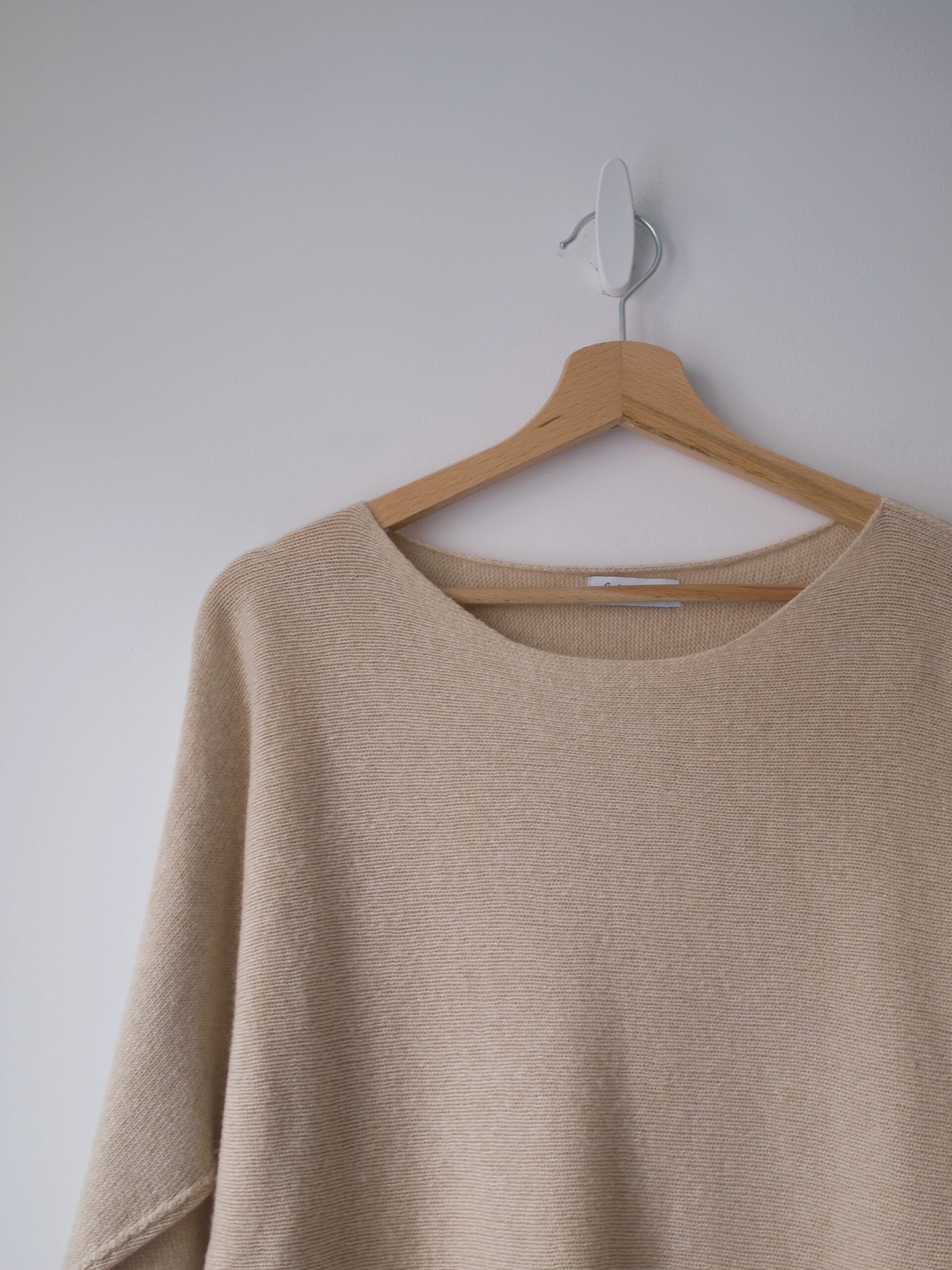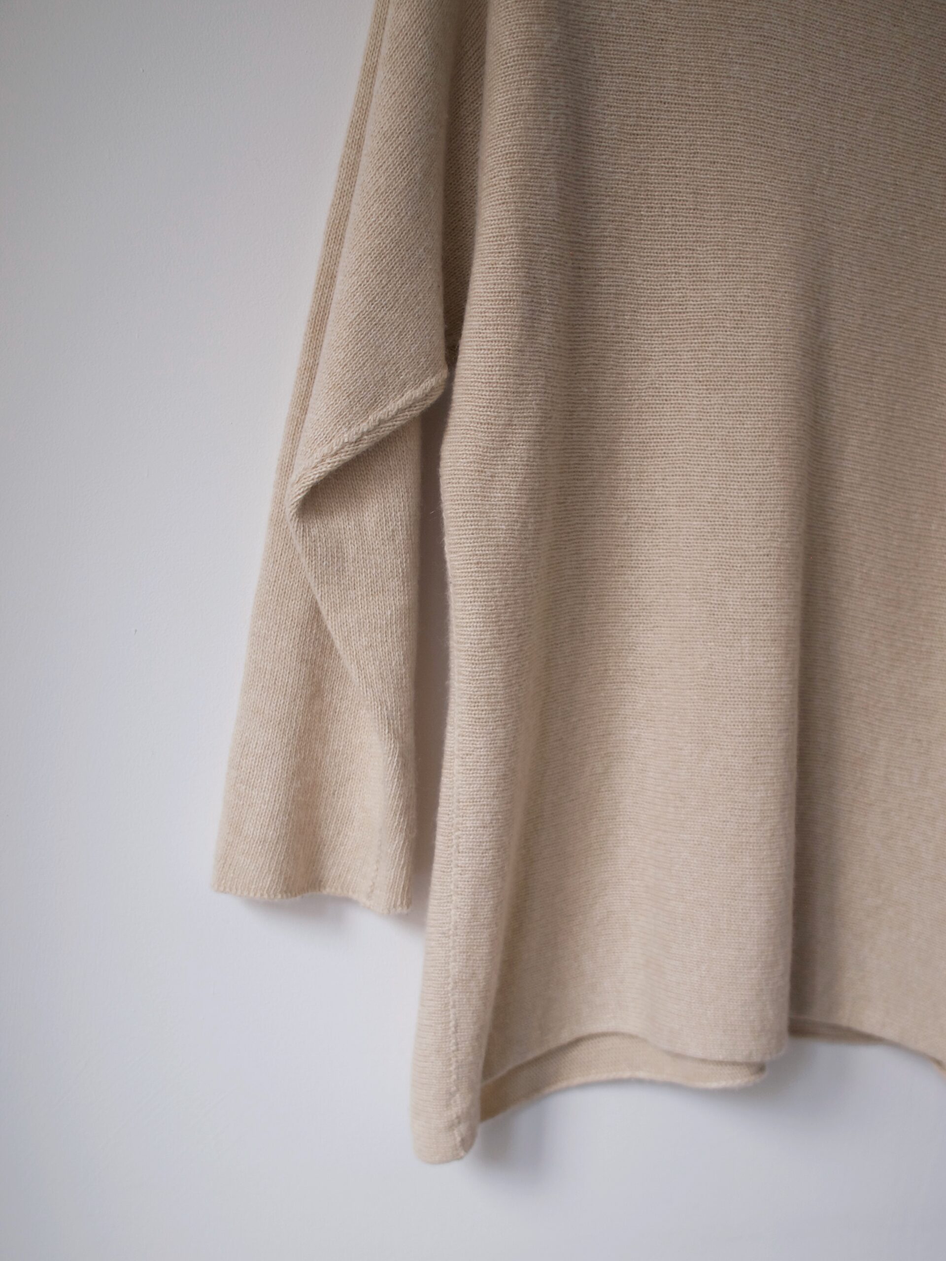 Minimalistyczny kremowy golf wykonany w 100% z wełny merynosa. Materiał przyjemny w dotyku, nie gryzie, sweter bez wad. Rozmiar z metki S, wymiary poniżej.