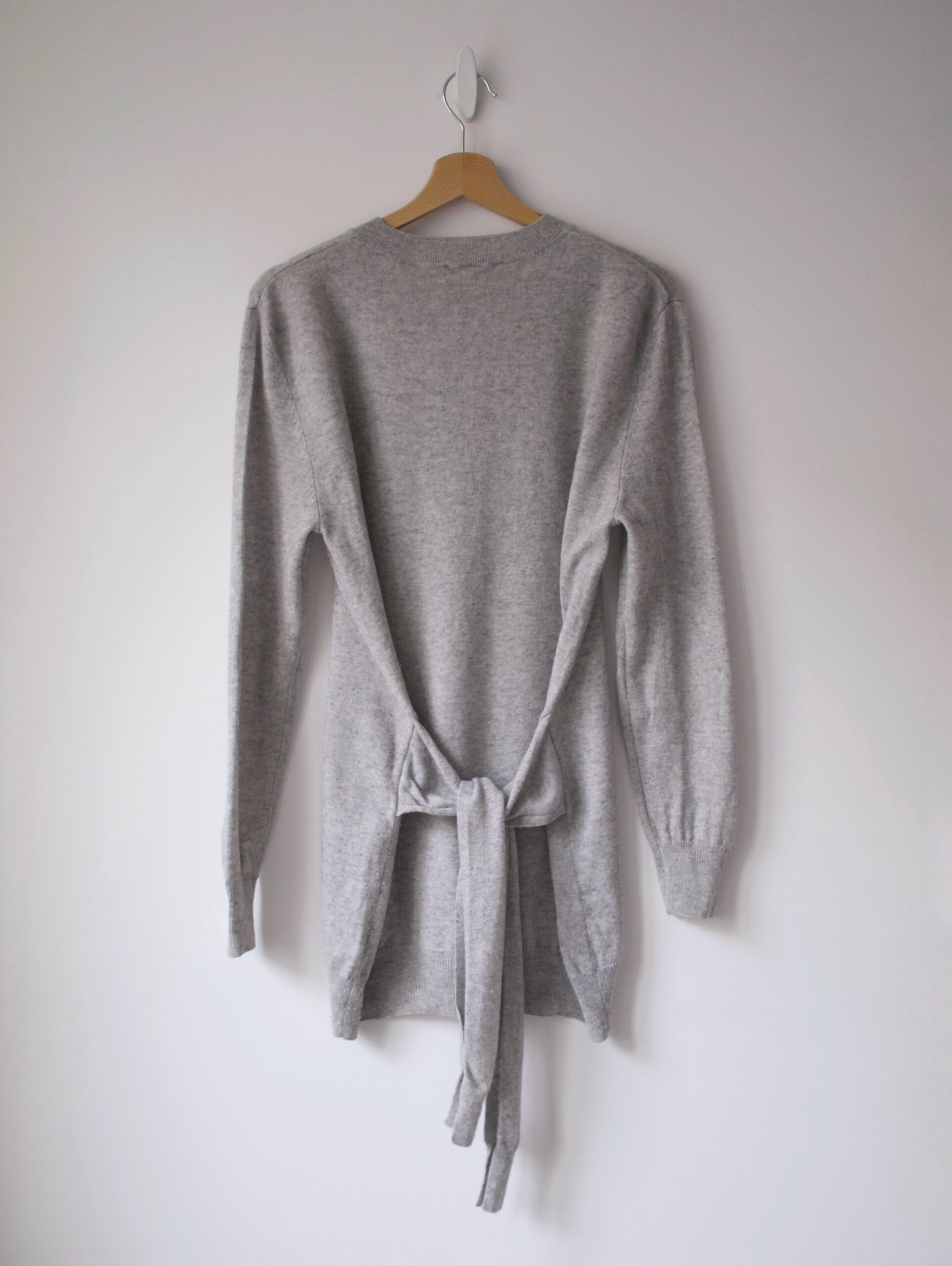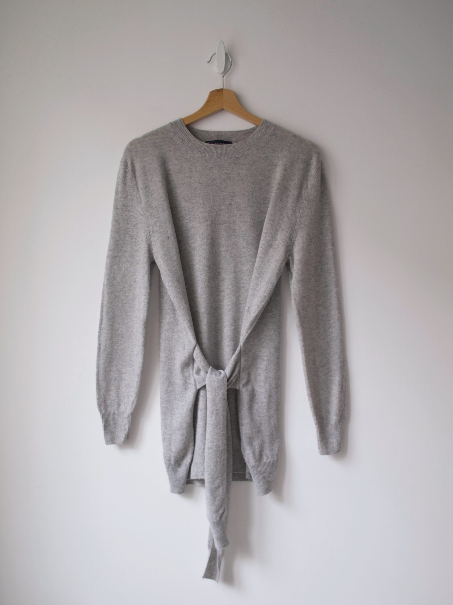 Klasyczny sweter M&S z dekoltem w serek. Skład to 100% kaszmir, bardzo dobry stan, jest minimalnie sfilcowany, nie jest to zauważalne, po prostu jest trochę sztywniejszy.
