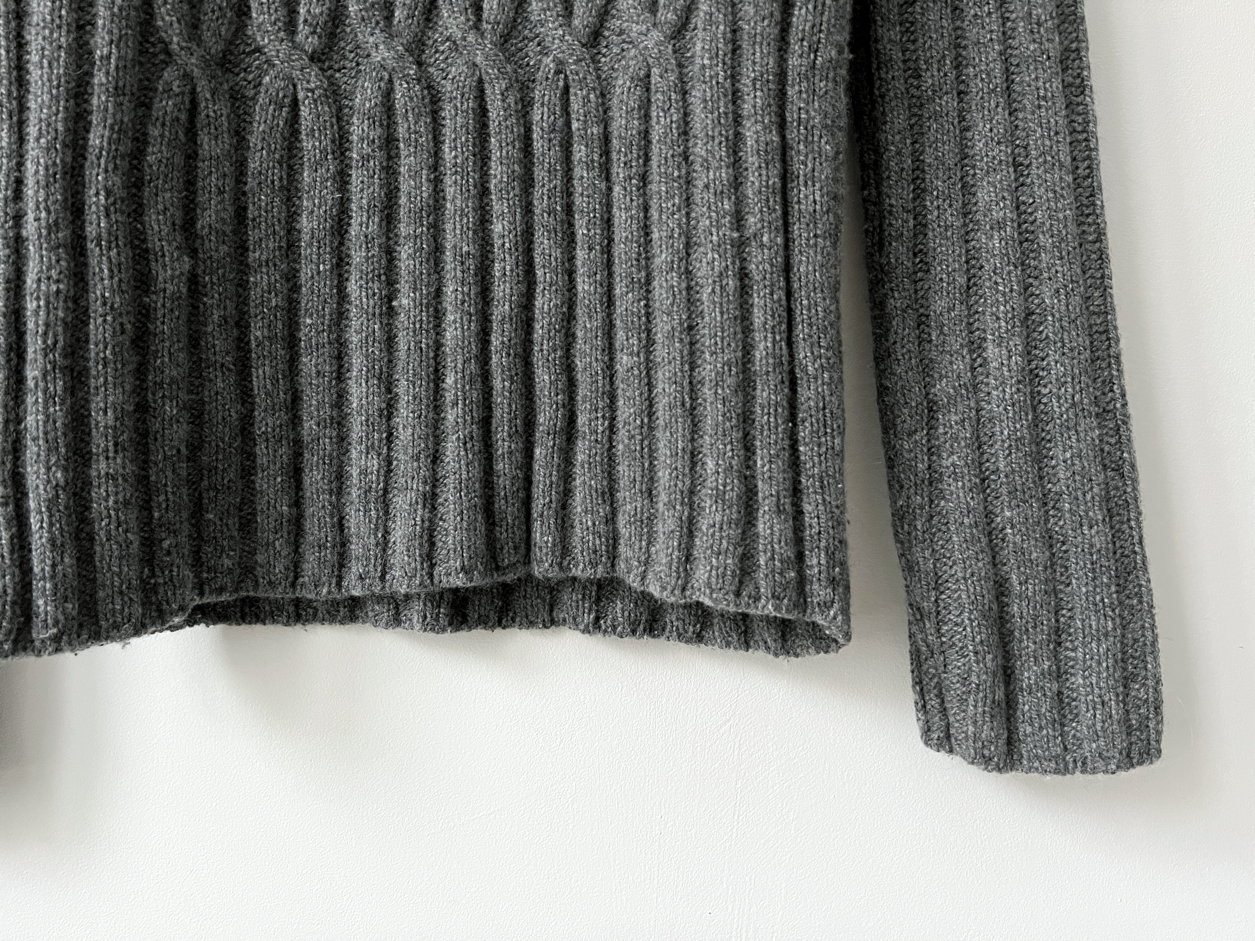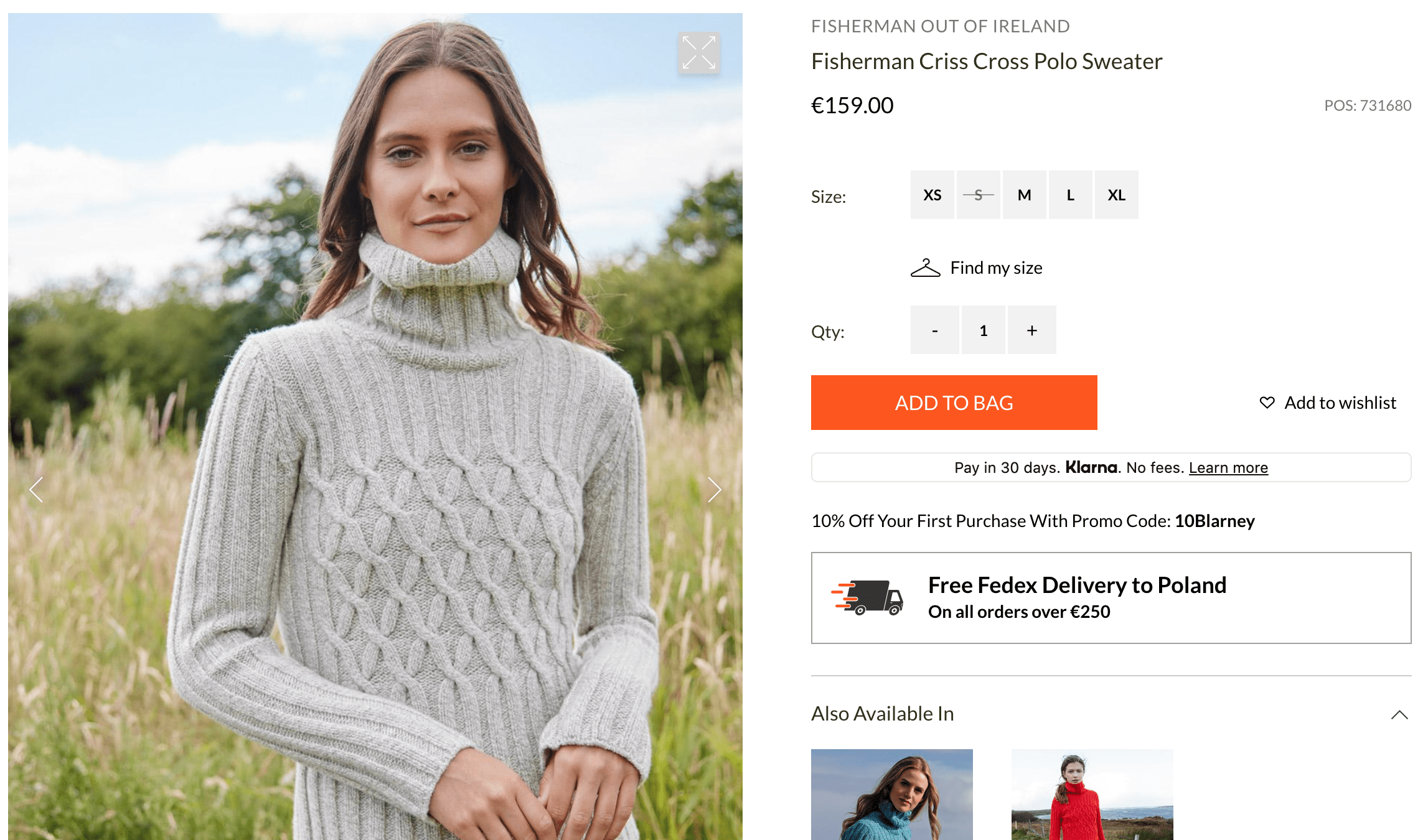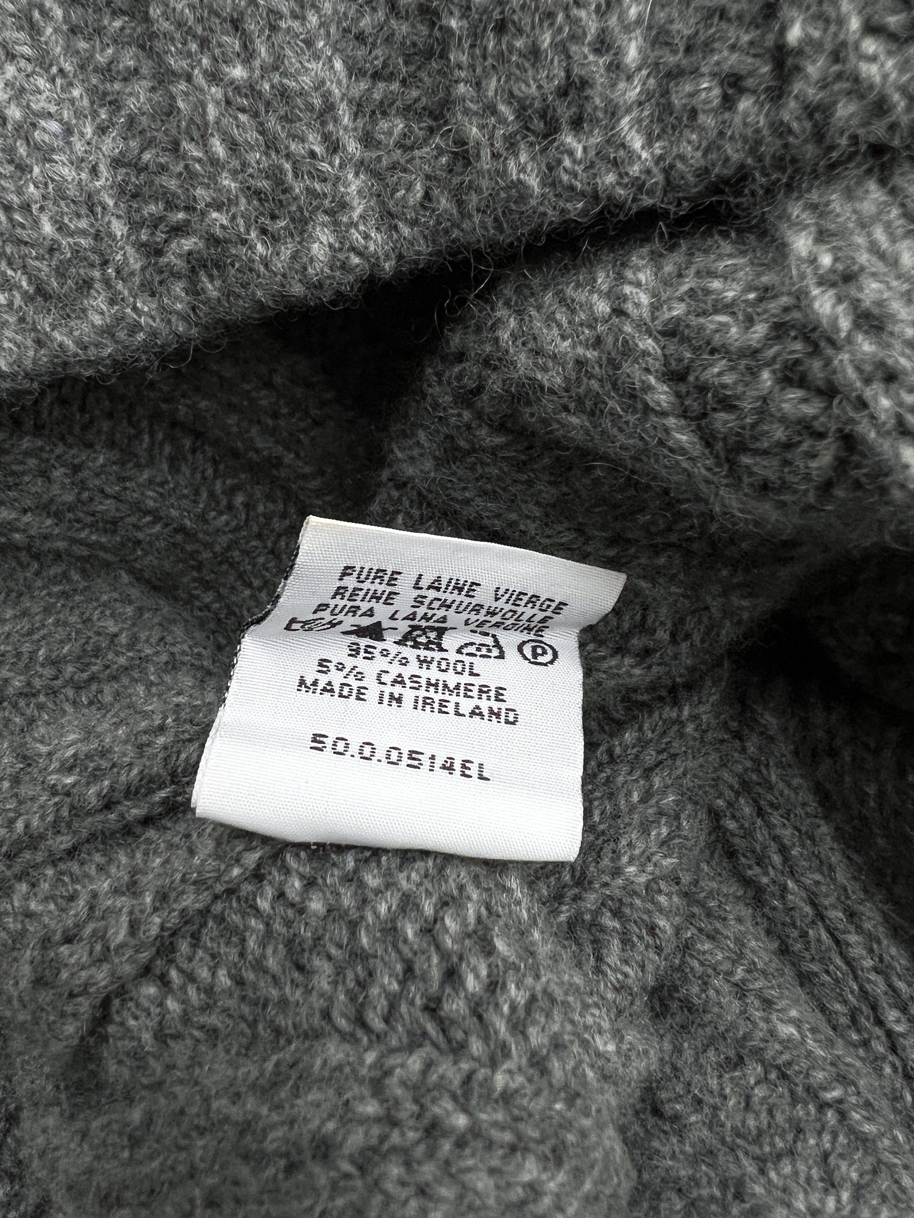 Sweter irlandzkiej marki Fisherman out of Ireland, specjalizującej się w produkcji wełnianych ubrań najwyższej jakości. Wykonany z niegryzącej wełniano-kaszmirowej tkaniny. Model Criss Cross Polo Sweater, cena katalogowa 159 euro, czyli ponad 700 zł.