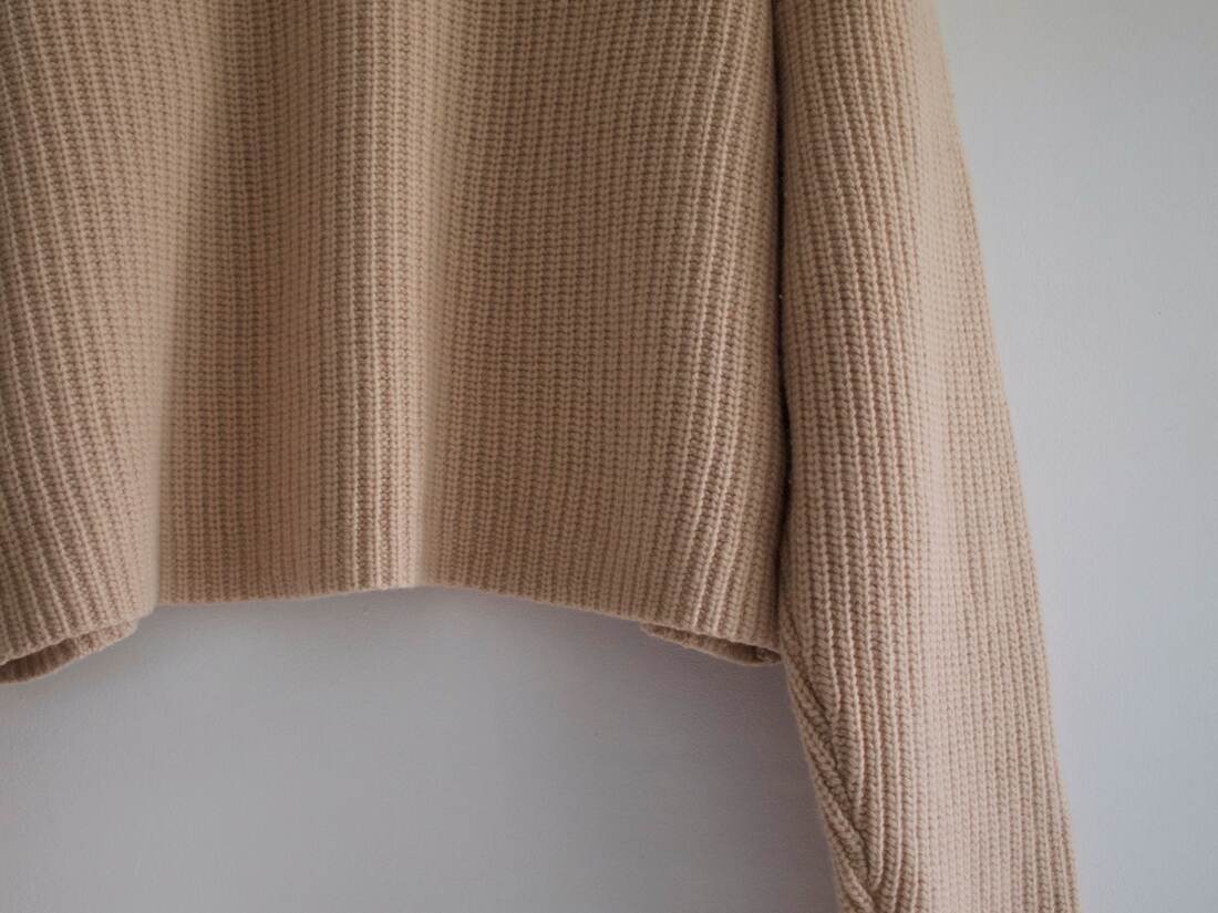 Gruby sweter wykonany z wełny z małym dodatkiem kaszmiru. Pochodzi z linii Premium marki H&M. Rozmiar z metki XS, fason mocno oversizowy, więc proszę sugerować się wymiarami. Bardzo dobry stan.
