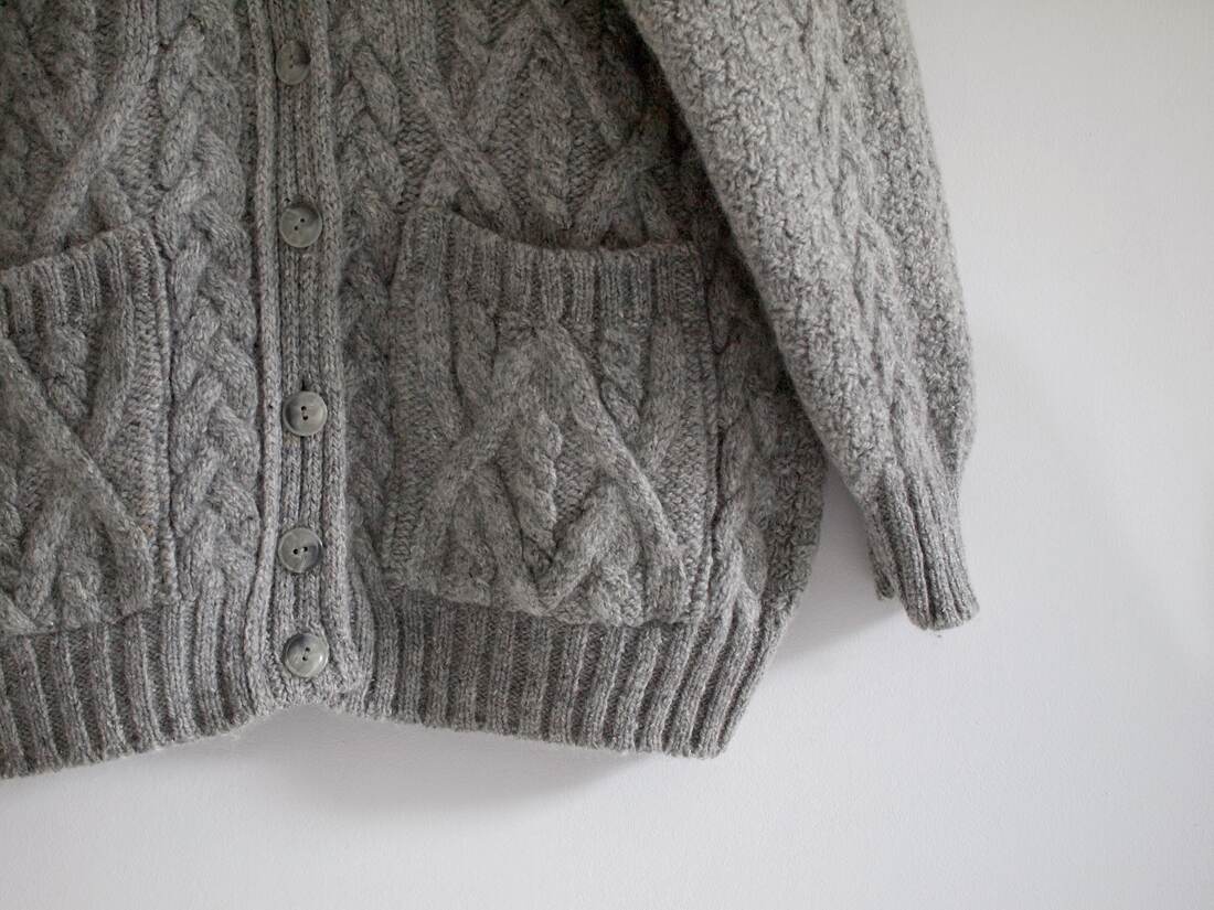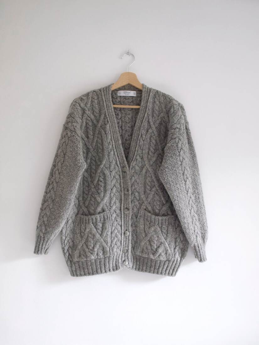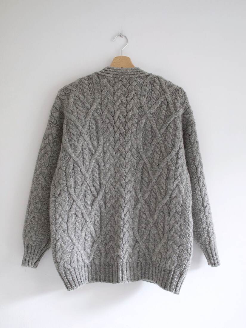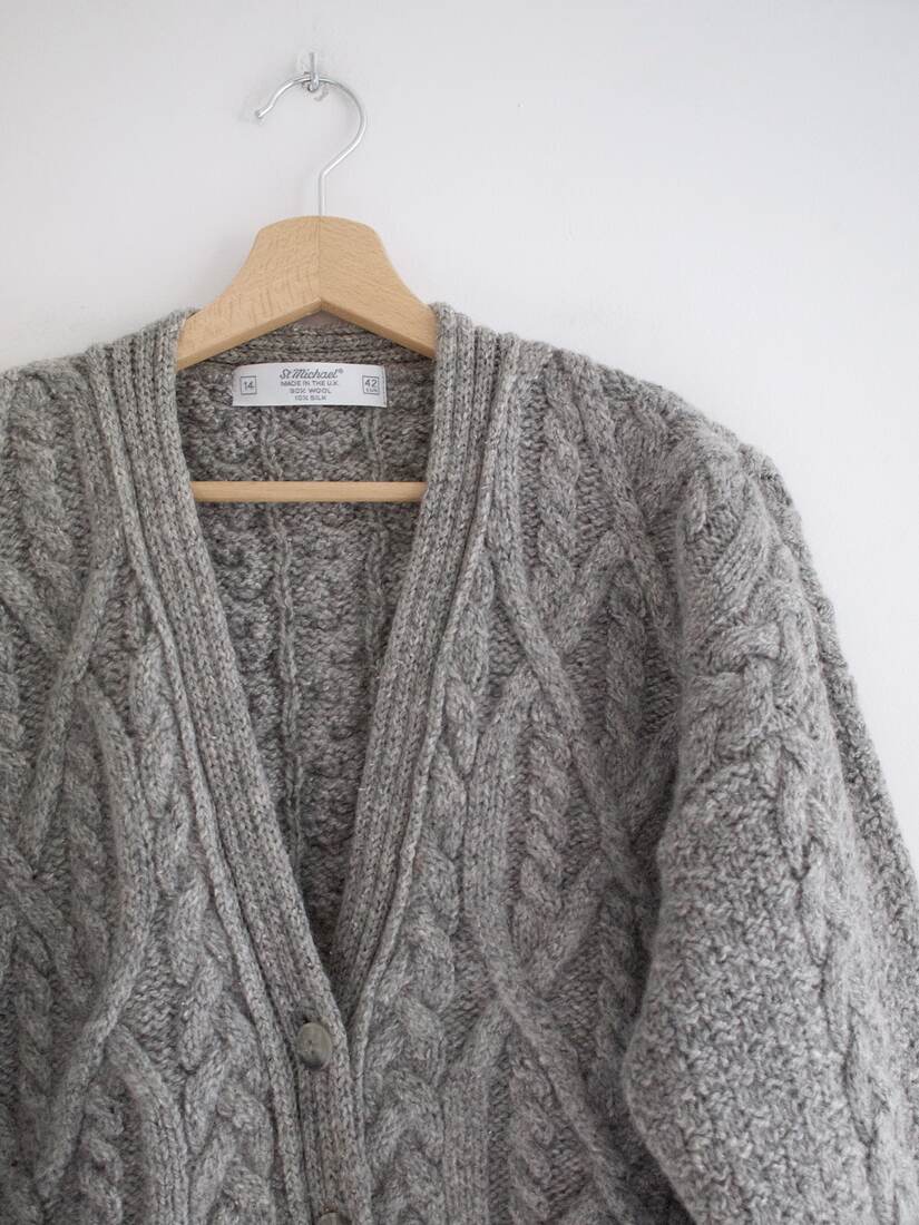 Gruby sweter vintage, wykonany z wełny z dodatkiem jedwabiu. Rozmiar z metki 42, ze względu na fason dość uniwersalny. Bardzo dobry stan.