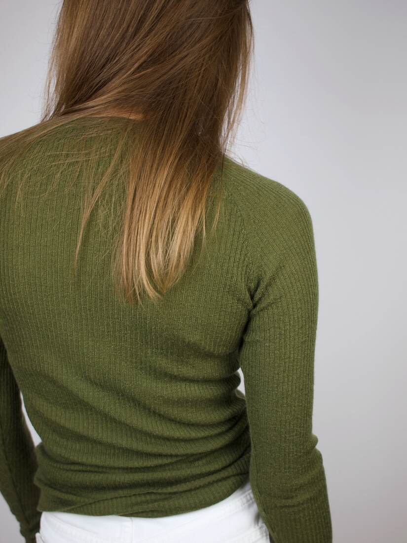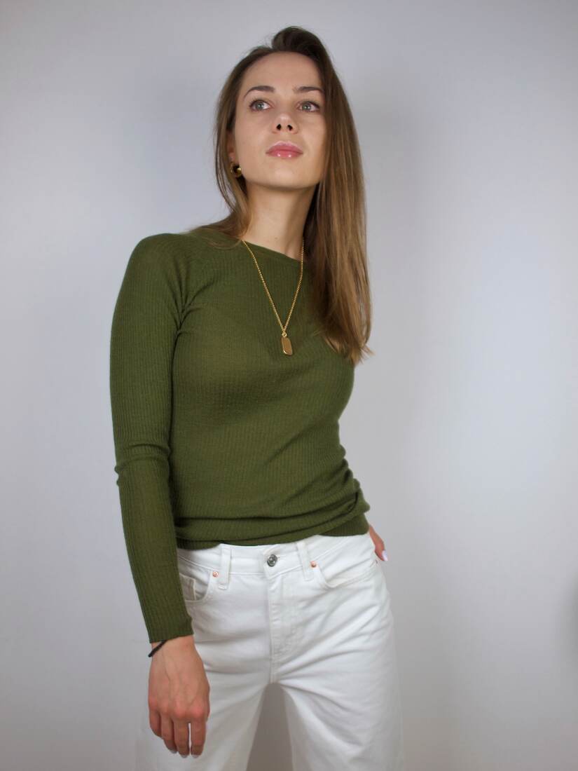 Skład: 55% wełna, 45% tencel. Modelka nosi rozmiar XS-S.