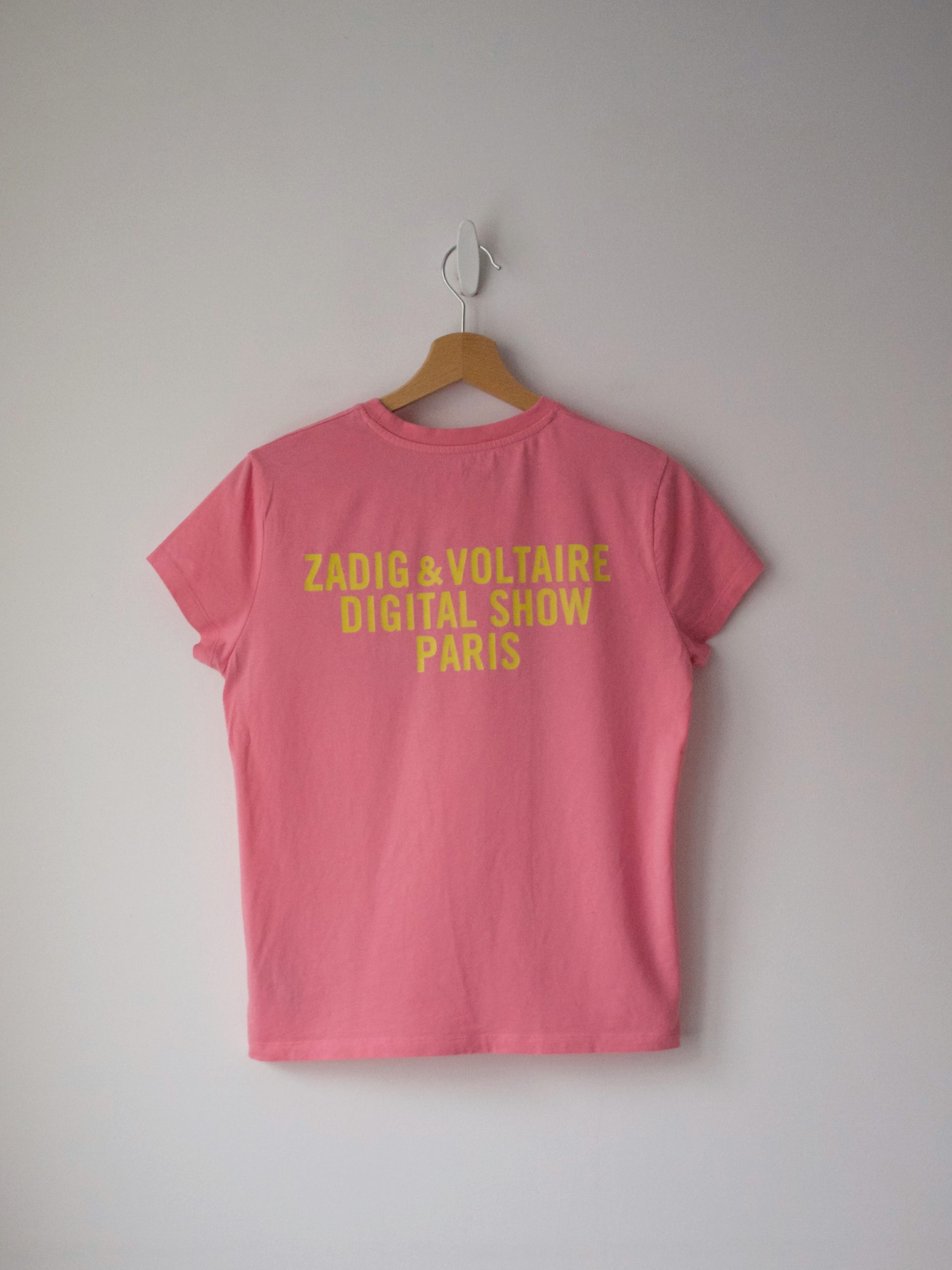 T-shirt luksusowej francuskiej marki Zadig & Voltaire. Rozmiar z metki: XS Skład: 100% bawełna Stan: idealny Szerokość w klatce 44 cm Długośćcałkowita 57 cm