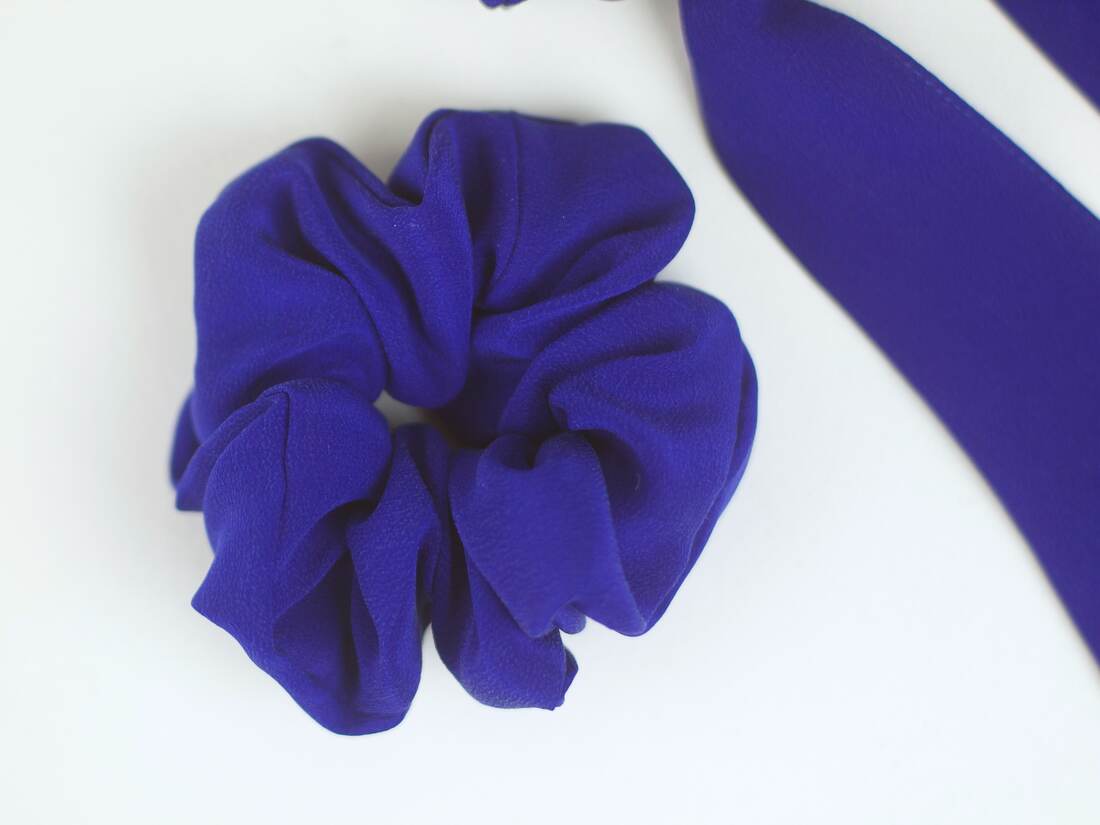 Zestaw dwóch jedwabnych gumek do włosów szyty z jedwabiu z recyklingu. Wstążkę można wiązać na dowolną gumkę.