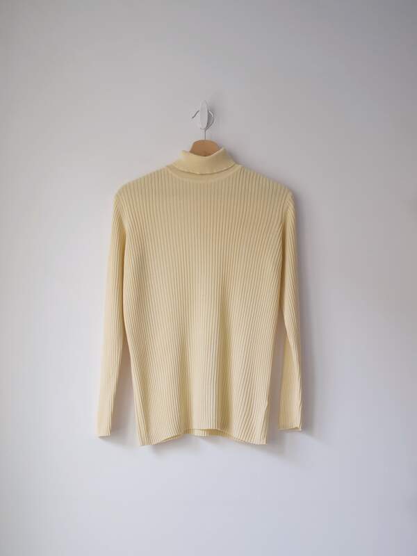Sweter ekskluzywnej brytyjskiej marki Wyse London. Kaszmirowe swetry na stronie marki są dostępne w cenie 1000-1500 zł. Kolor khaki, na rękawach i na dole kontrastowe wstawki. Rozmiar z metki: L Skład: kaszmir Stan: bez wad Szerokość w klatce 51,5 cm Długośćcałkowita 69 cm