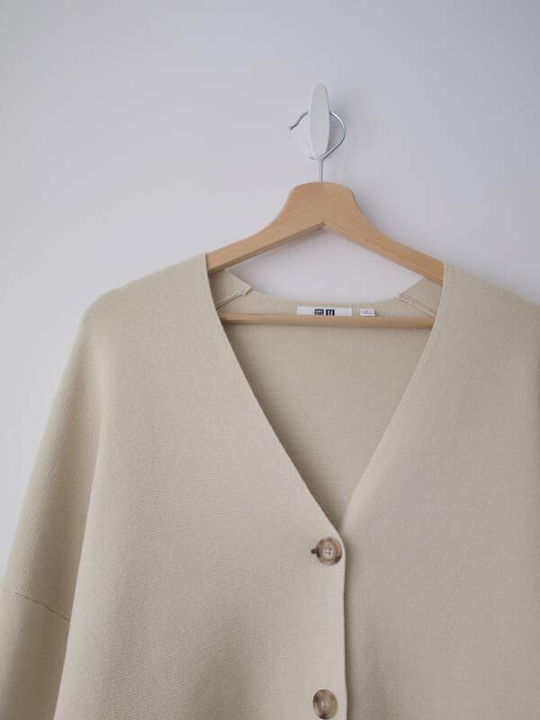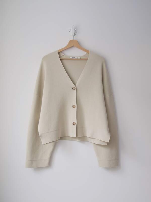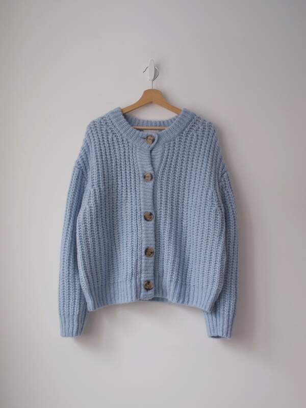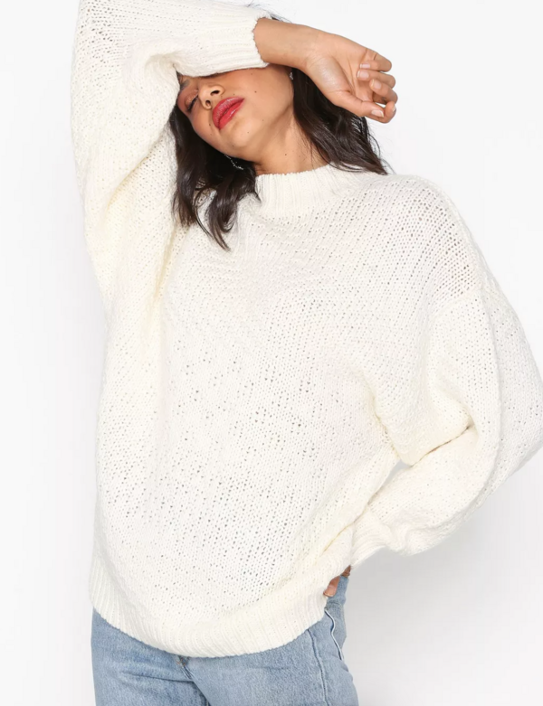Minimalistyczny sweter, w 100% wykonany z gładkiej niegryzącej wełny. Rozmiar z metki: M Skład: 100% wełna Stan: bez wad Szerokość w klatce 52 cm Długośćcałkowita 62 cm