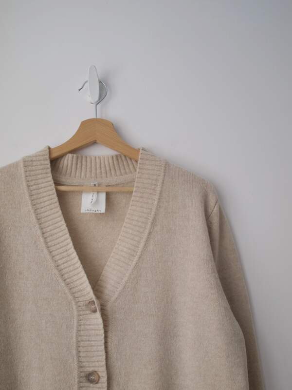 90,00 złKardigan brytyjskiej marki Thought, specjalizującej się w zrównoważonej produkcji ubrań. Na jednym rękawie ma plamkę, gubi się w melanżu i jest mało zauważalna.