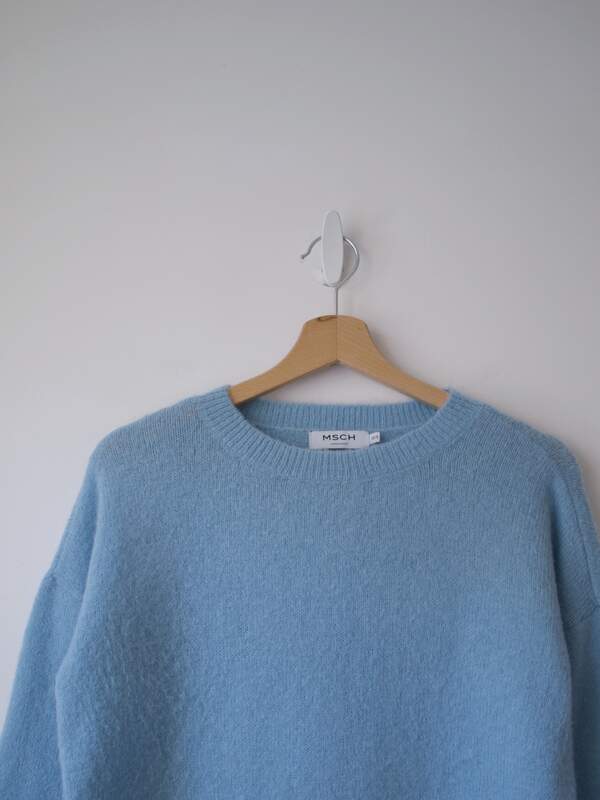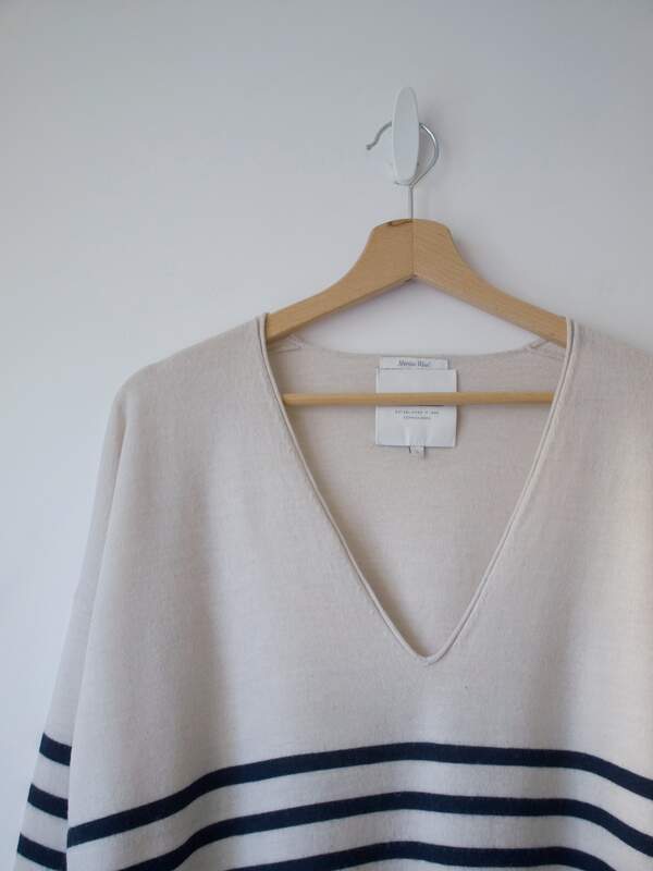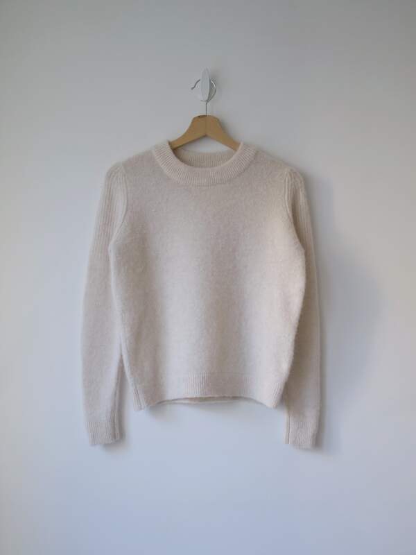 Rozmiar: S, luźny fason, jednak rękawy są dopasowane, więc proszę sprawdzić wymiary Skład: 100% wełna merino Stan: bardzo dobry Szerokość w klatce 56 cm Szerokość rękawa 14 cm Długośćcałkowita 59 cm
