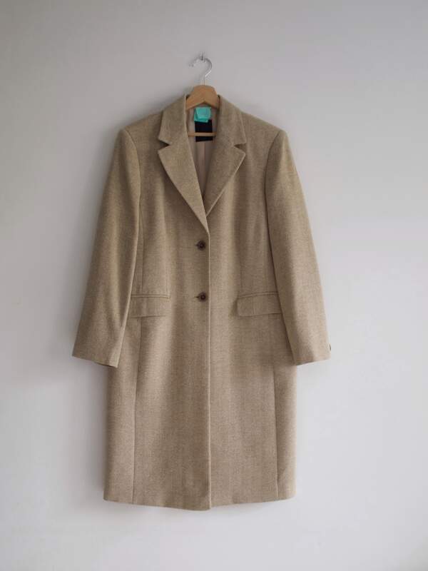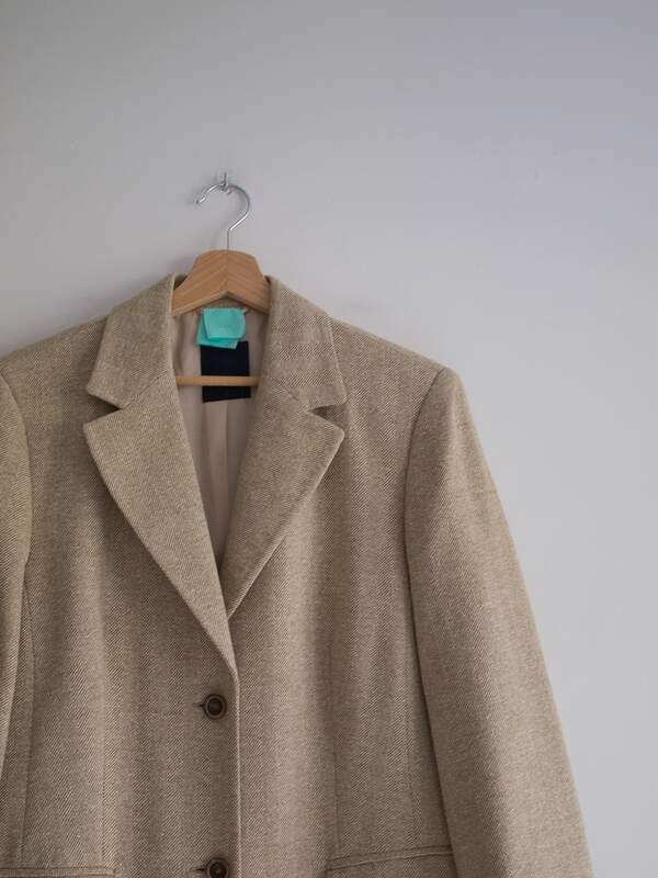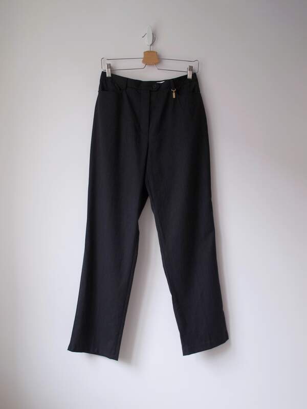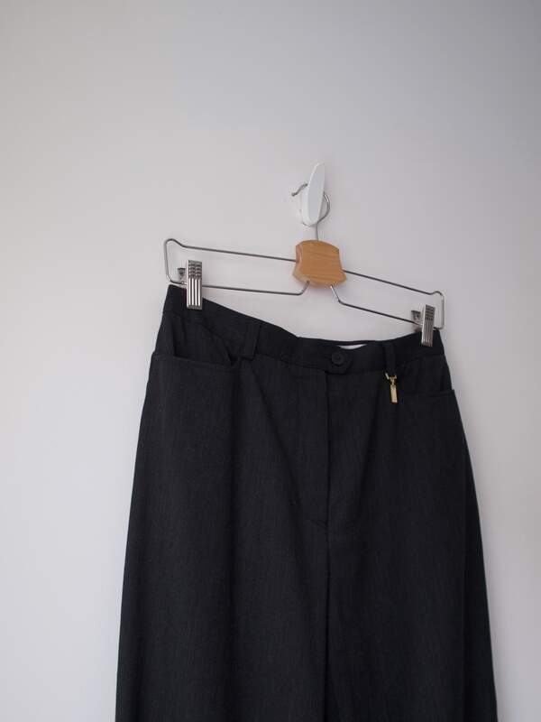 140,00 złSpodnie vintage z wysokim stanem. Wykonane z mieszanki wełny oraz bawełny. Można zaprasować na kant. Kolor to ciemny szary.