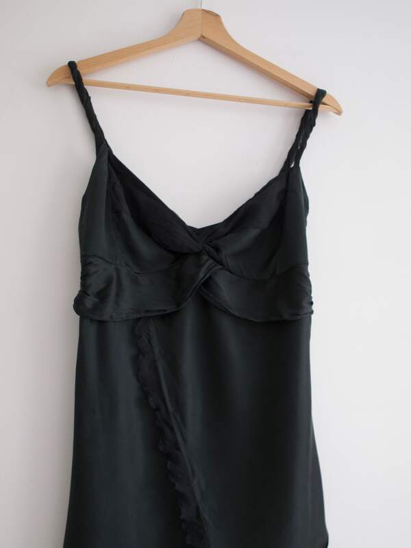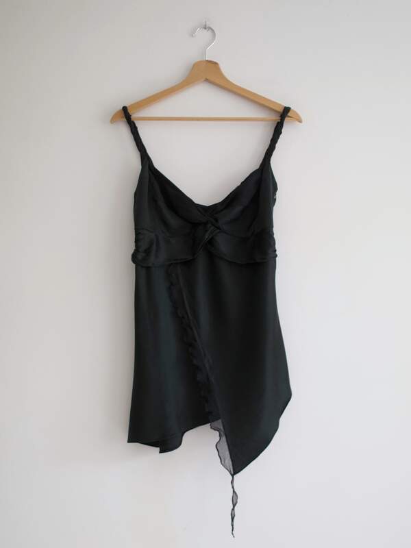 jedwabny top ekskluzywnej marki Karen Millen Skład: 100% jedwab Stan: bardzo dobry Szerokość w klatce 37 cm Długość całkowita boku razem z ramiączkiem 77 cm