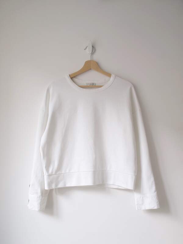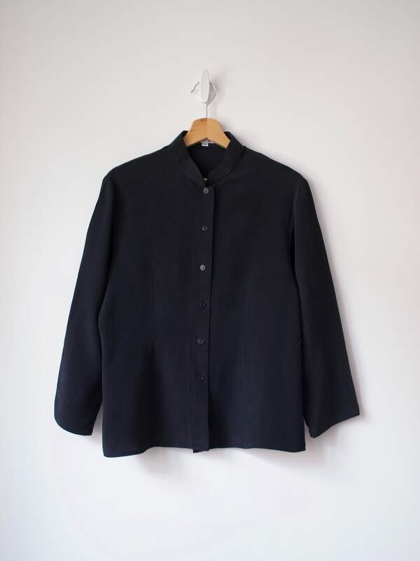 Bluzka szwajcarskiej pracowni Laukuan Silk House. Wykonana z gęstego matowego jedwabiu. Rozmiar: włoski 42/M
