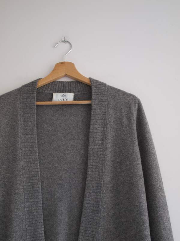 Kardigan luksusowej marki Allude, specjalizującej się w produkcji kaszmirowych ubrań. Rozmiar: S-M Skład: 100% kaszmir Stan: bez wad Szerokość w klatce 46 cm Długośćcałkowita 87 cm