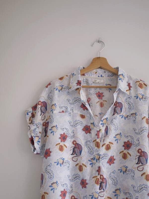 Skład: 100% jedwab Stan: bardzo dobry Szerokość w klatce 47 cm Długośćcałkowita 63 cm