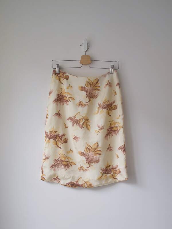 Spódnica luksusowej norweskiej marki ByTimo. Rozmiar: z metki S, polecam na większy! Skład: brak metki, wiskoza Stan: bez wad Szerokość w pasie 38 cm Szerokość w biodrach 49 cm Długość całkowita 60 cm