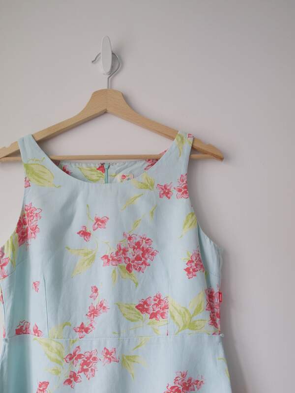 Lniana sukienka vintage. Z tyłu zapinana na zamek. Skład: 100% len, podszewka 100% wiskoza Stan: bez wad Szerokość w klatce 44 cm Długośćcałkowita 104 cm