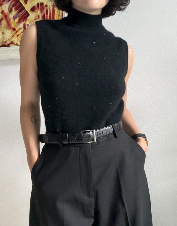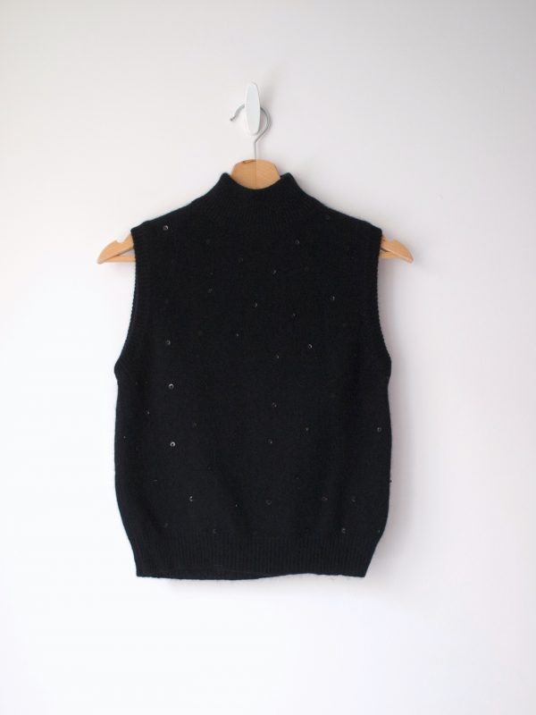 Puszysta kamizelka vintage, delikatnie zdobiona cekinami.