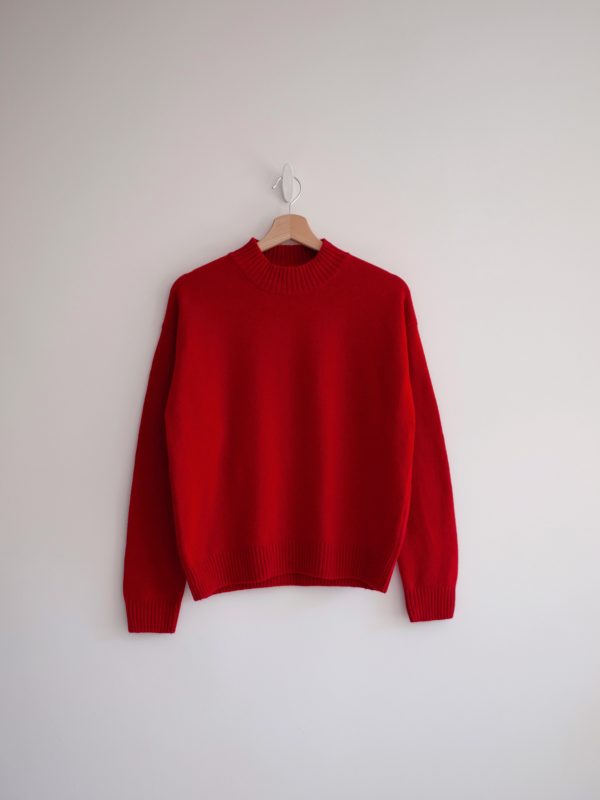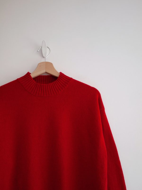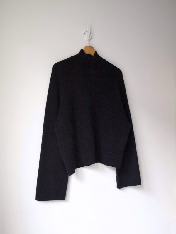 Sweter skandynawskiej marki Weekday, w 100% wykonany z wełny. Ma luźny fason, półgolf oraz długie, rozszerzane rękawy.