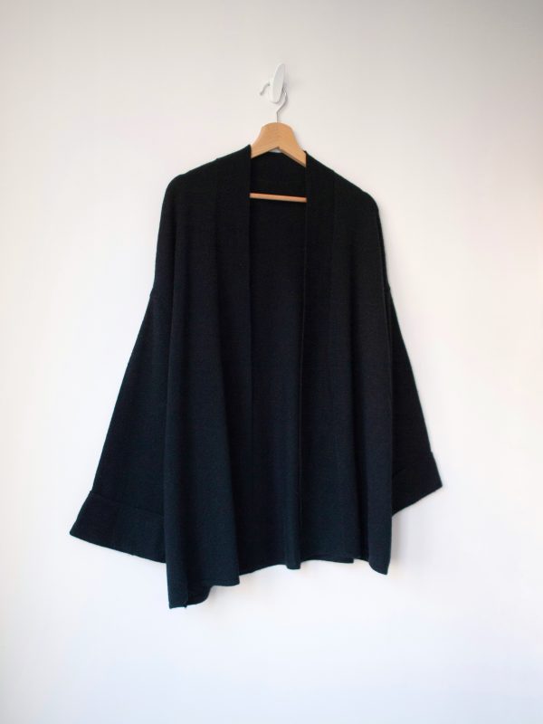 Narzutka o kimonowym fasonie z szerokimi rękawami. Wykonana z miękkiej w dotyku mieszanki wełny merino i kaszmiru. Ekskluzywna marka Drykorn.