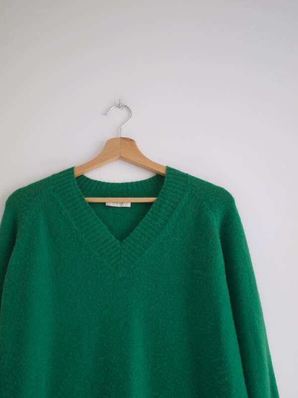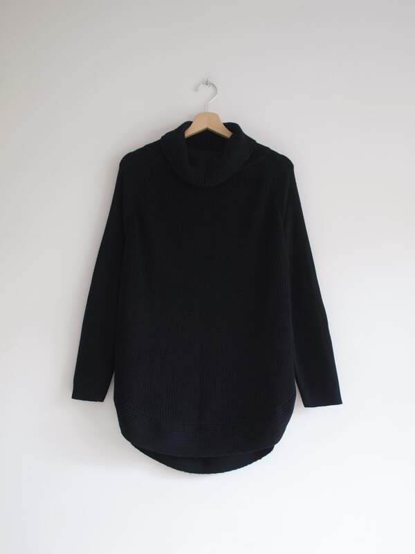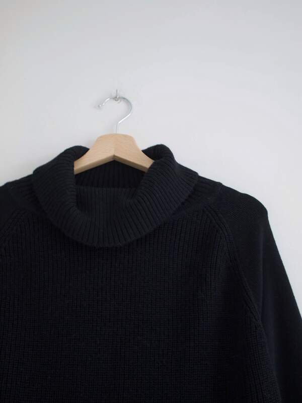 Gruby wełniany sweter-peleryna, może być noszony jako okrycie wierzchnie Rozmiar: L Skład: 100% wełna Stan: bez wad Szerokość w klatce 58 cm Długośćcałkowita 71 cm