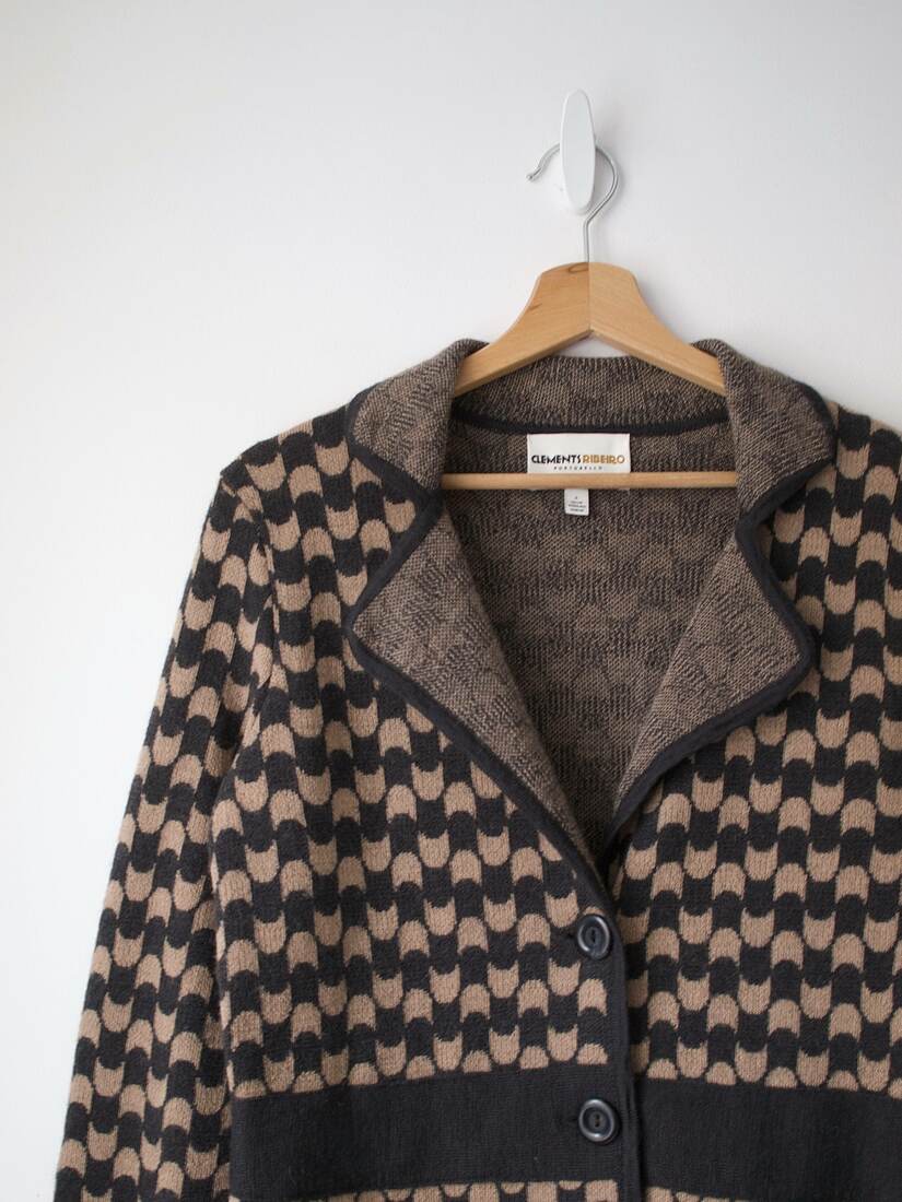 270,00 zł162,00 złKardigan luksusowej szkockiej marki Clements Ribeiro, ceny swetrów tej marki można zobaczyć na ostatnim zdjęciu. Model vintage.