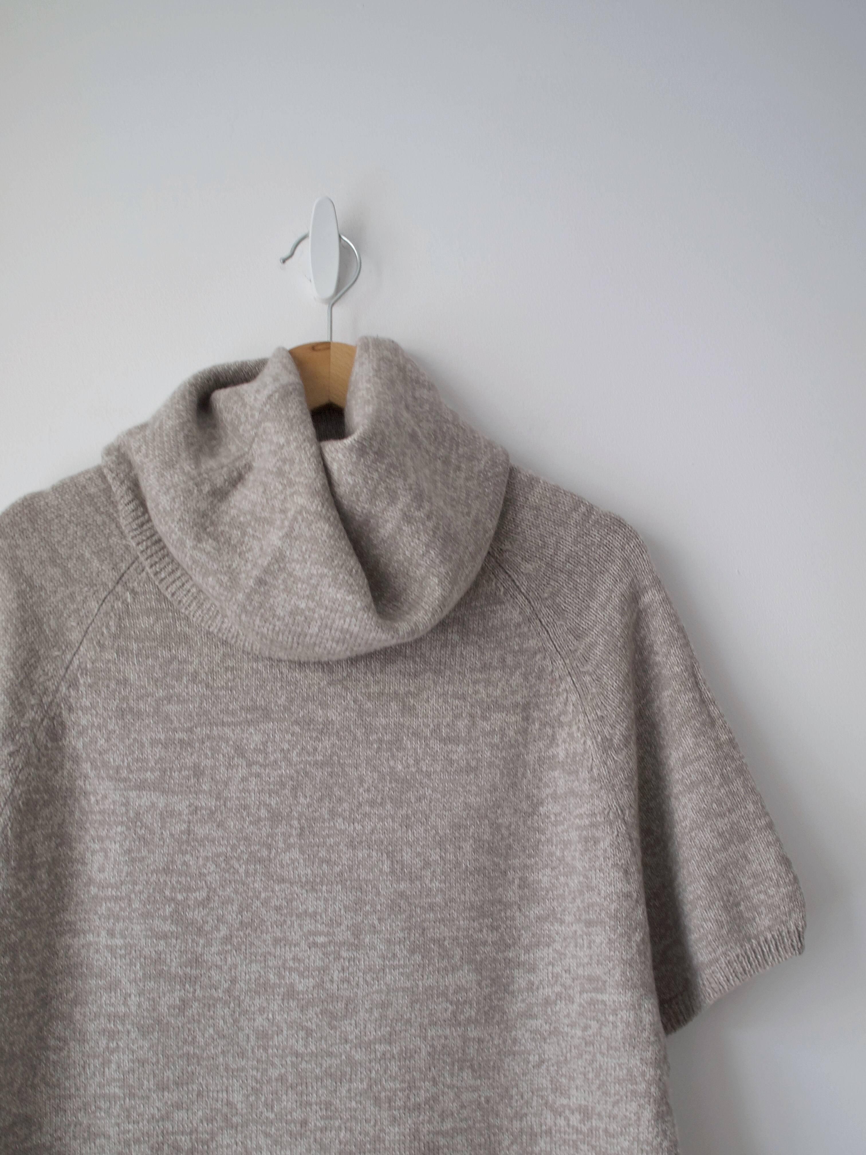 Rozmiar z metki: S, uniwersalny Skład: 100% wełna Stan: idealny Szerokość w klatce 54 cm Długość całkowita 64 cm