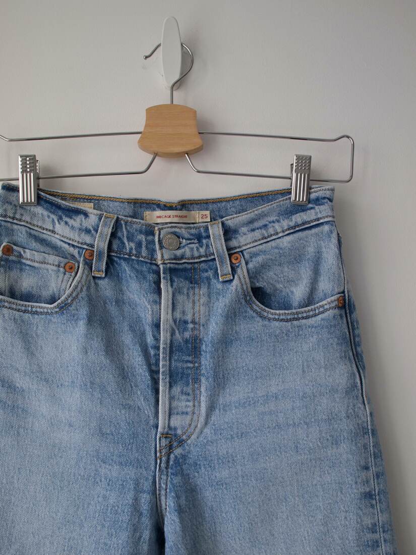 Jeansy marki Levi’s, model Ribcage. Na nogawce mała plamka, mało widoczna (ost. zdjęcie)