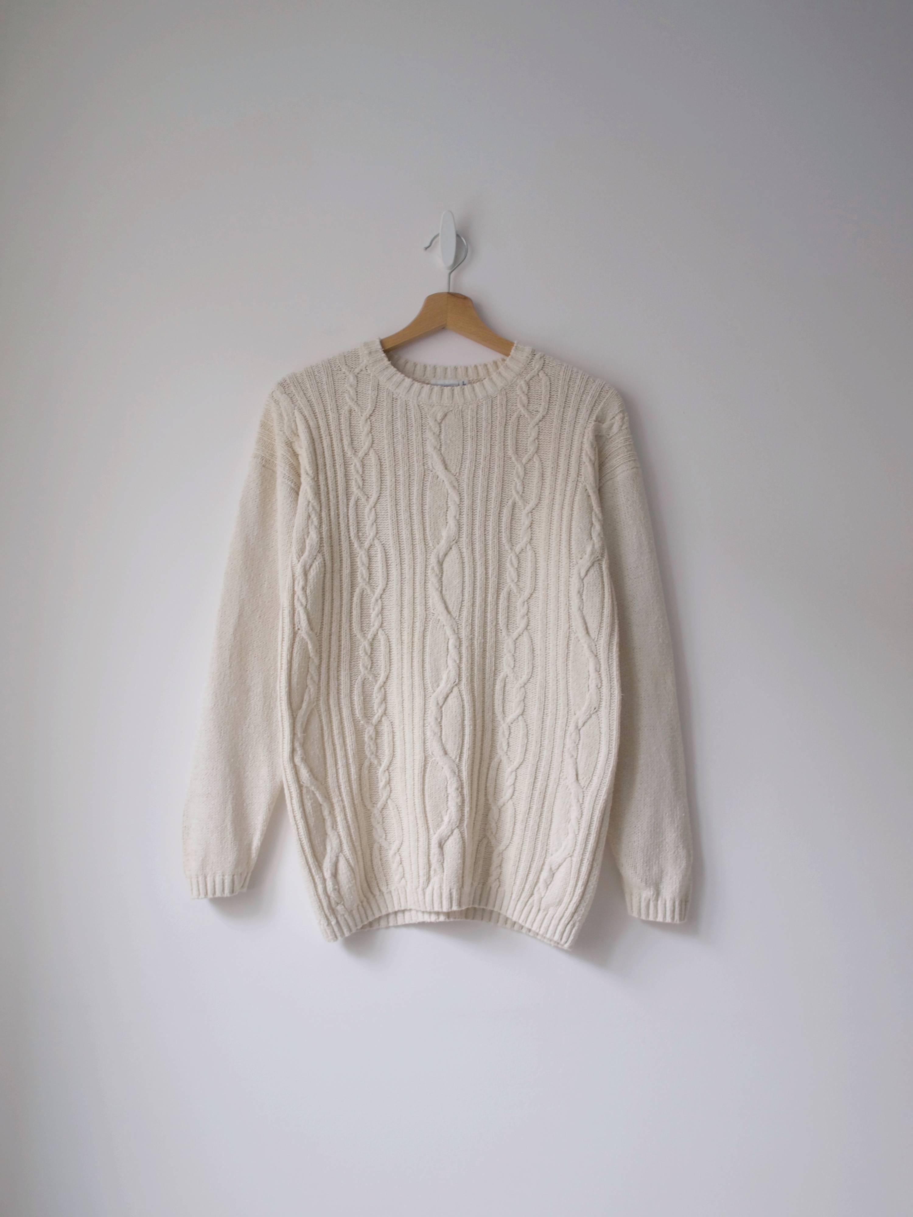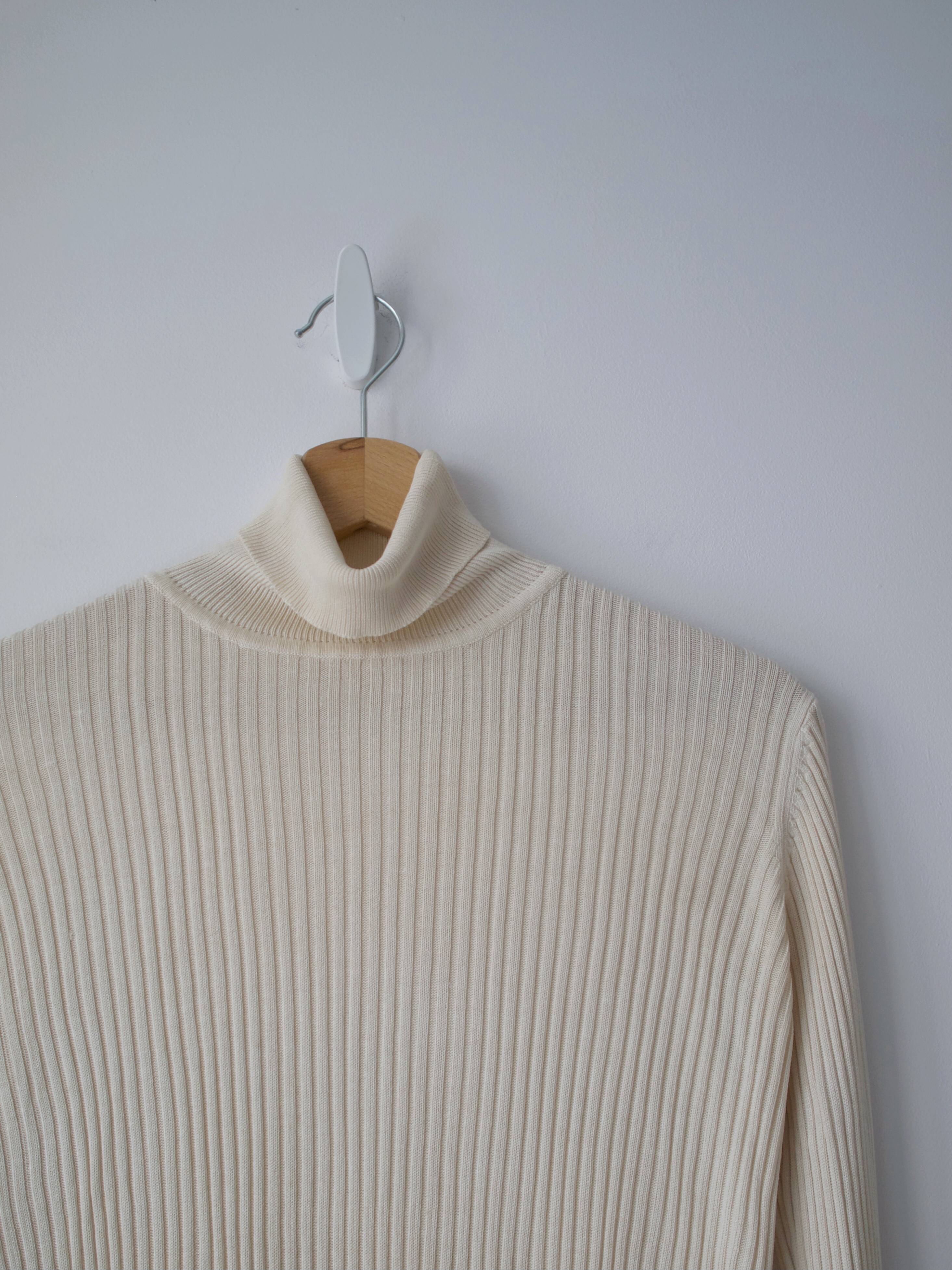 Kremowy jedwabny golf w prążki. Rozmiar z metki: brak, M-L