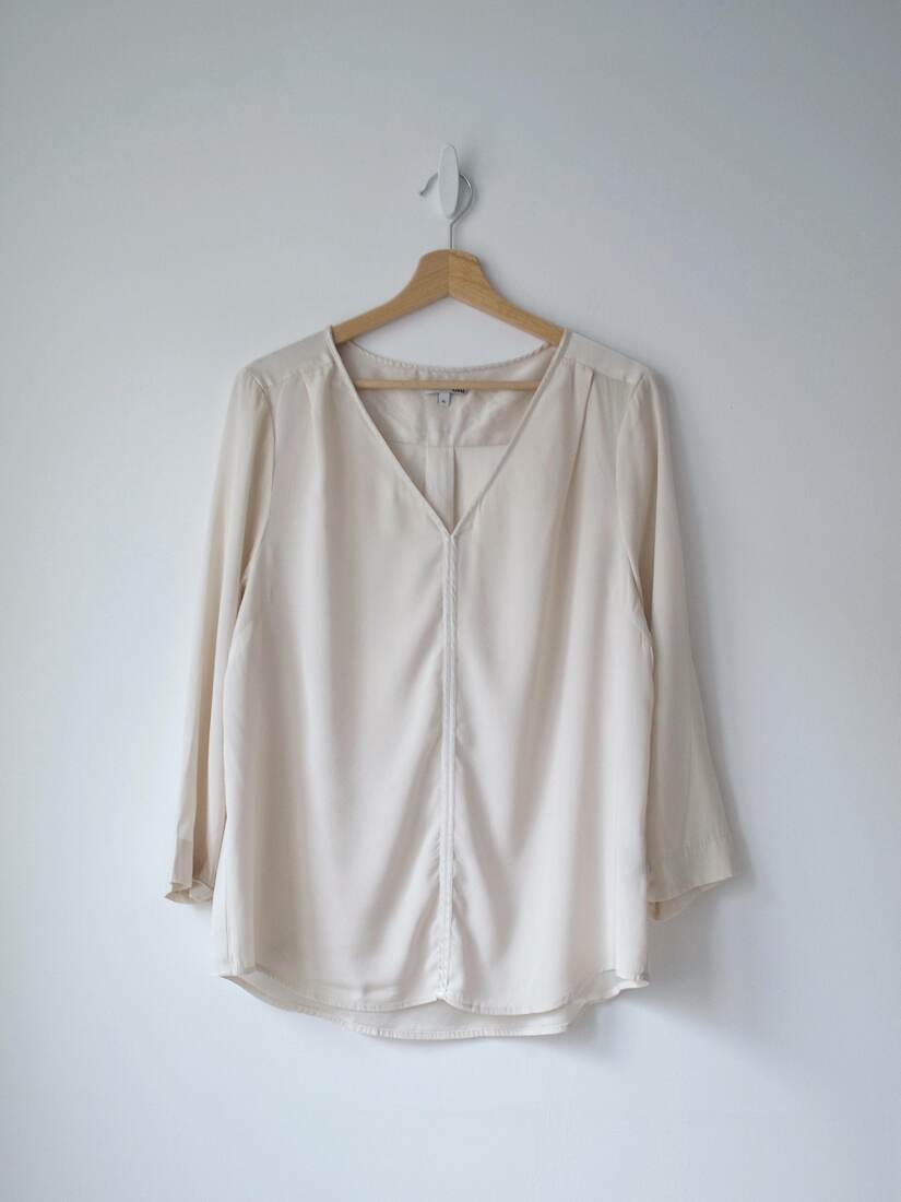 130,00 złJedwabna bluzka w kremowym kolorze. Wykonana z jedwabiu, satynowa strona jest wewnątrz, przez co bluzka jest bardzo przyjemna w noszeniu.