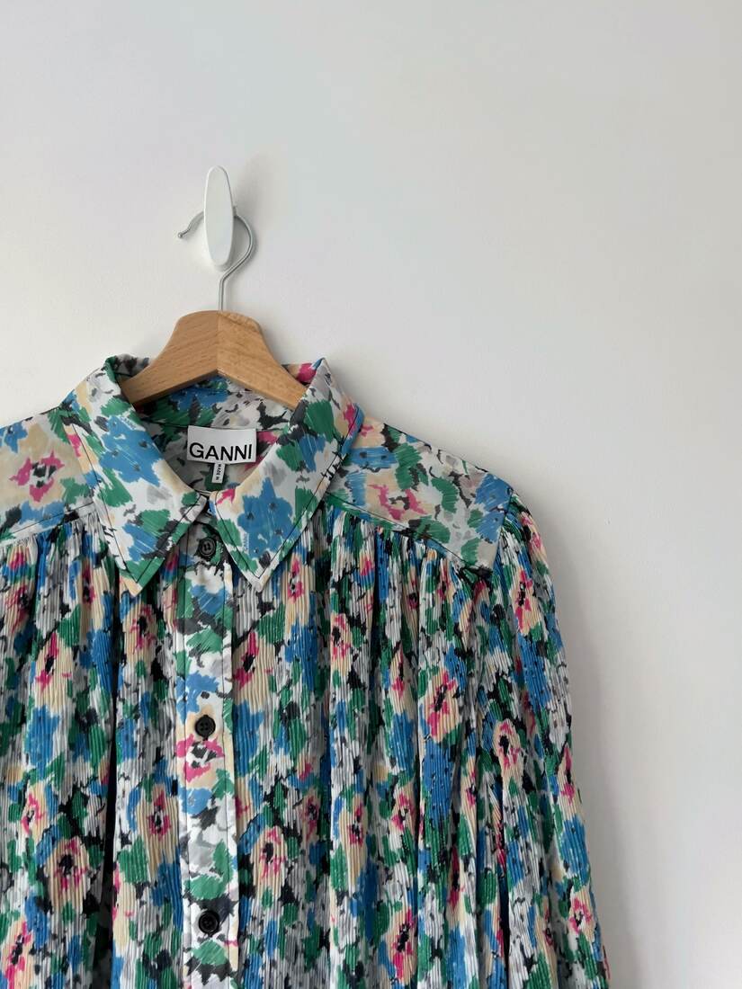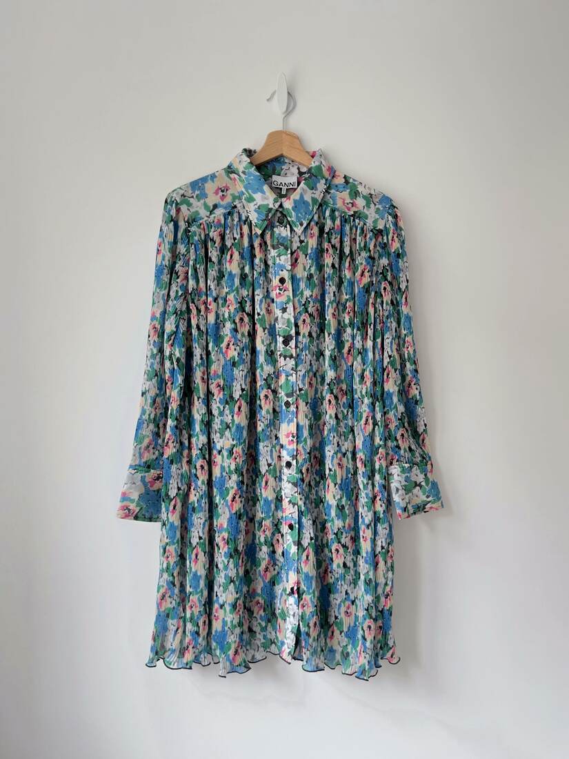 260,00 złPlisowana sukienka w kwity. Skandynawska marka Ganni, sukienka dostępna do zakupu w cenie 2 tys. zł.