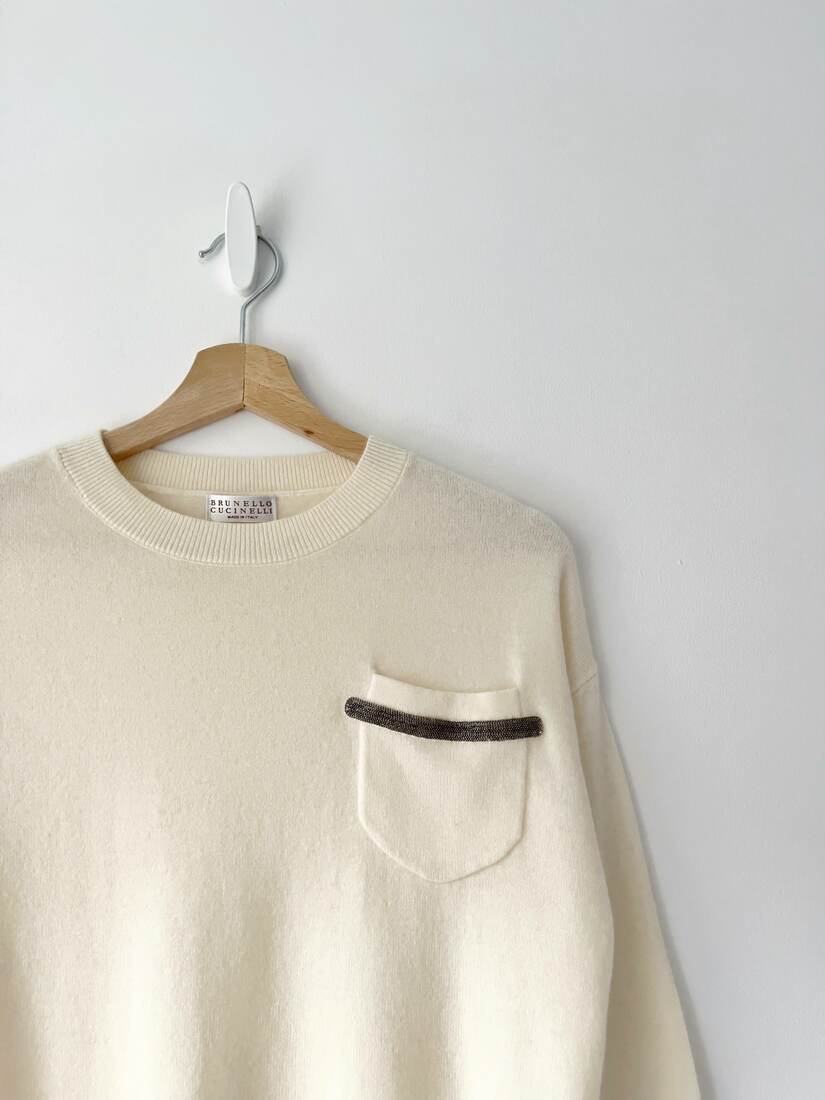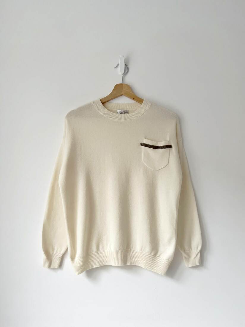 490,00 złKaszmirowy sweter luksusowej marki Brunello Cucinelli. Jest wystawiony na sprzedaż również w serwisie Vestiaire Collective, gdzie był sprawdzany na autentyczność.