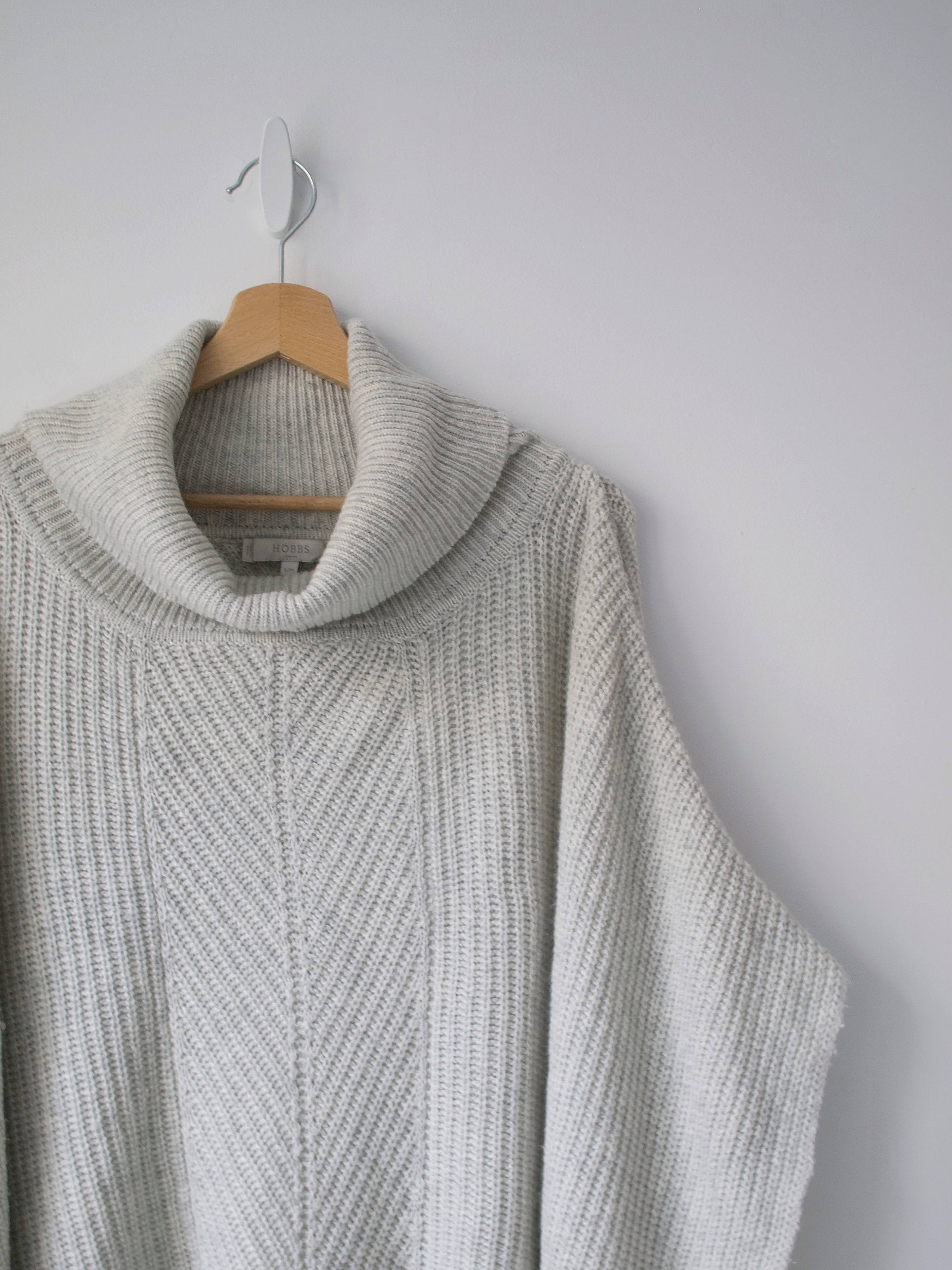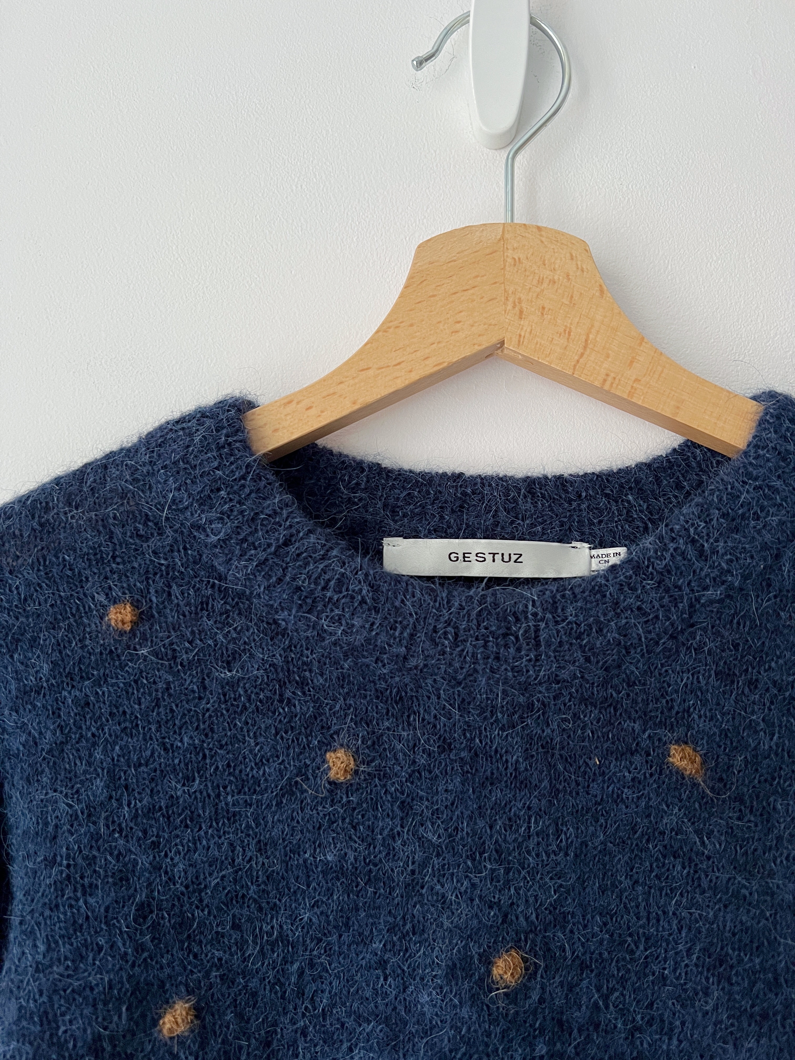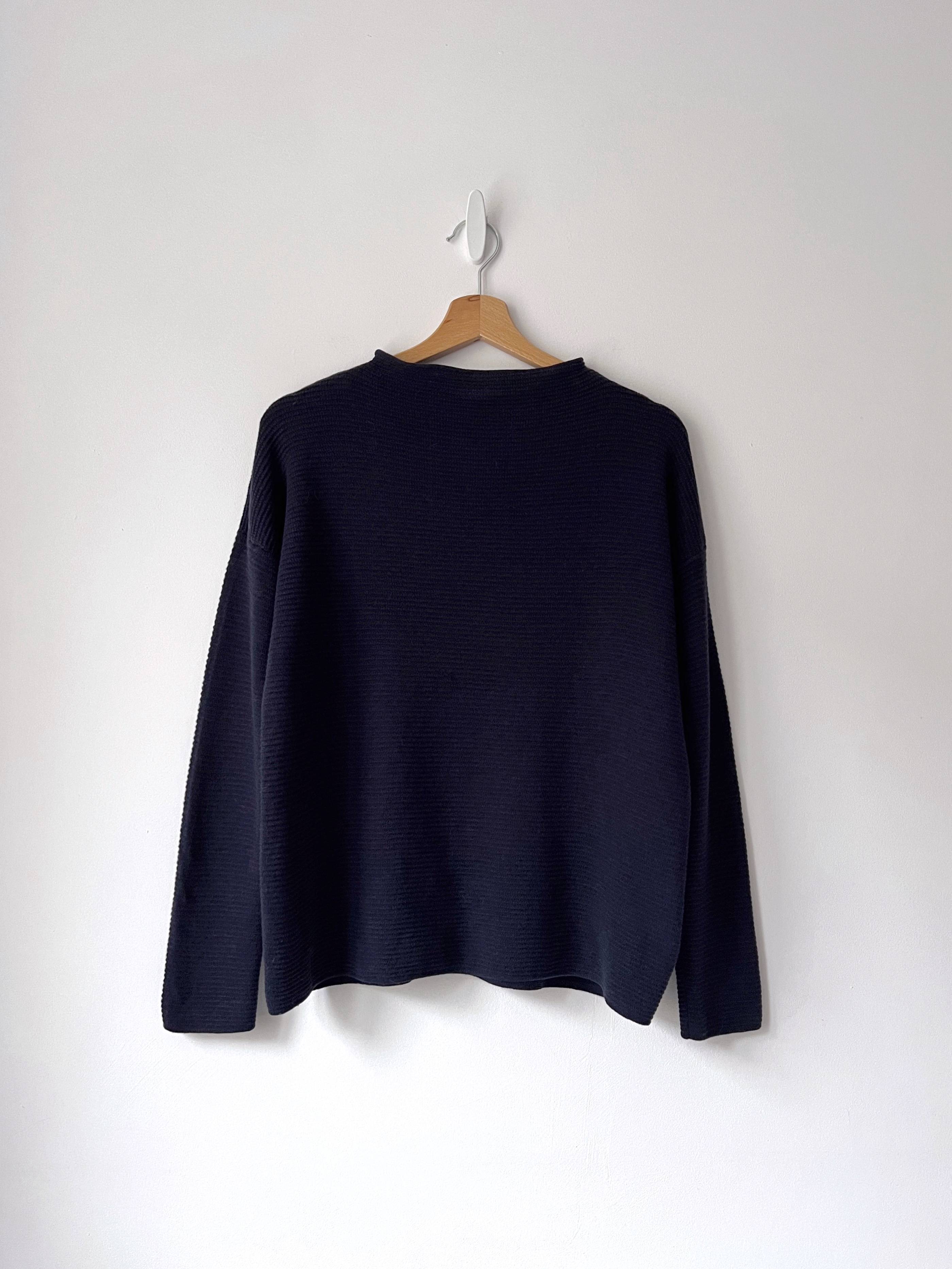 Rozmiar z metki: XS, luźny fason, więc polecam również na S-M Skład: 80% wełna, 20% poliamid Stan: idealny Szerokość w klatce 51 cm Długośćcałkowita 61 cm
