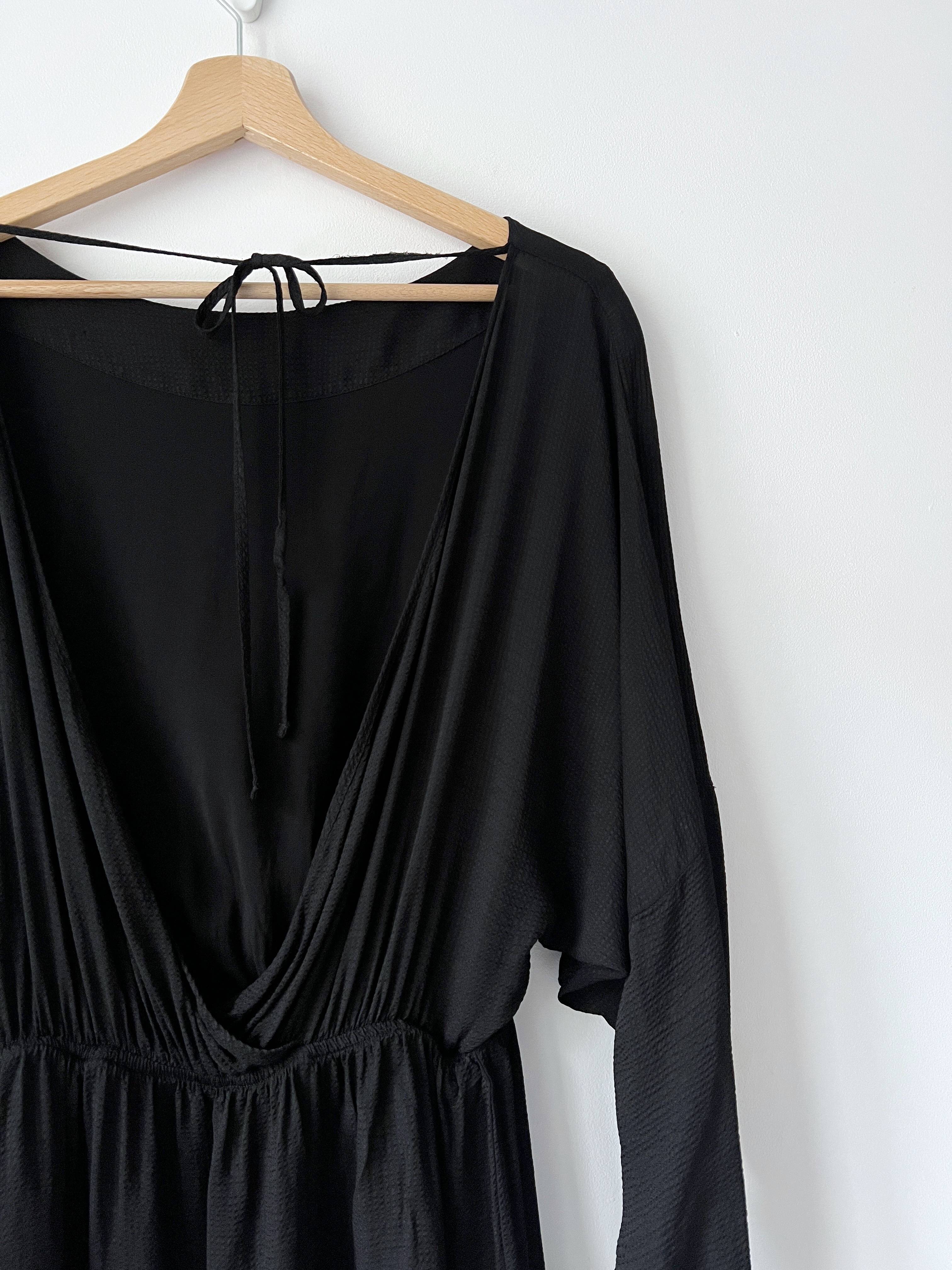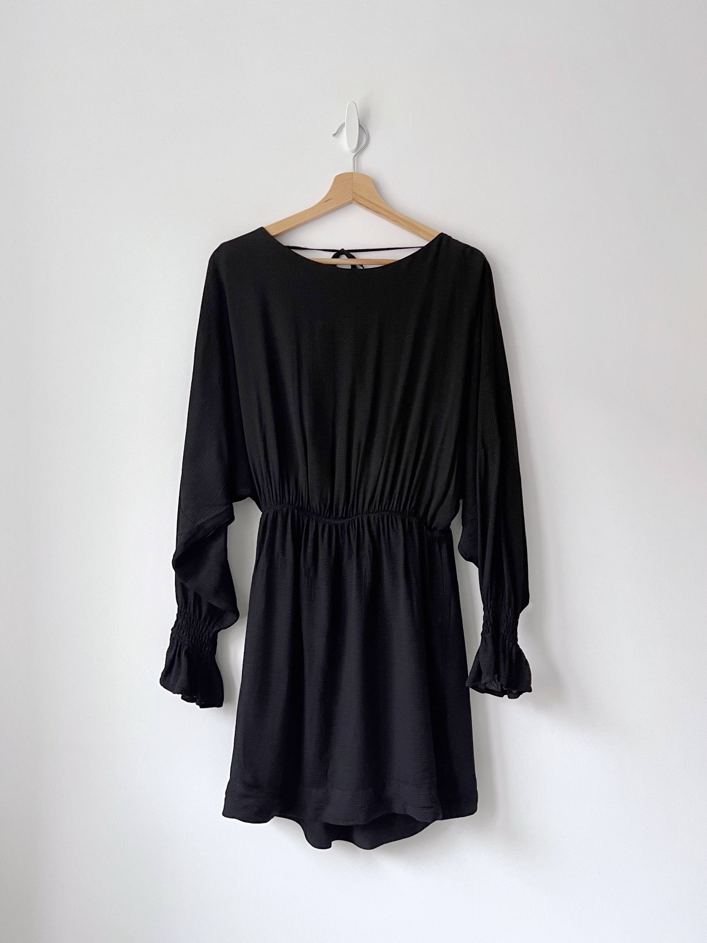 Sukienka ekskluzywnej duńskiej marki Baum und Pferdgarten. Rękawy a la nietoperz, duży dekolt z tyłu. Z podszewką.