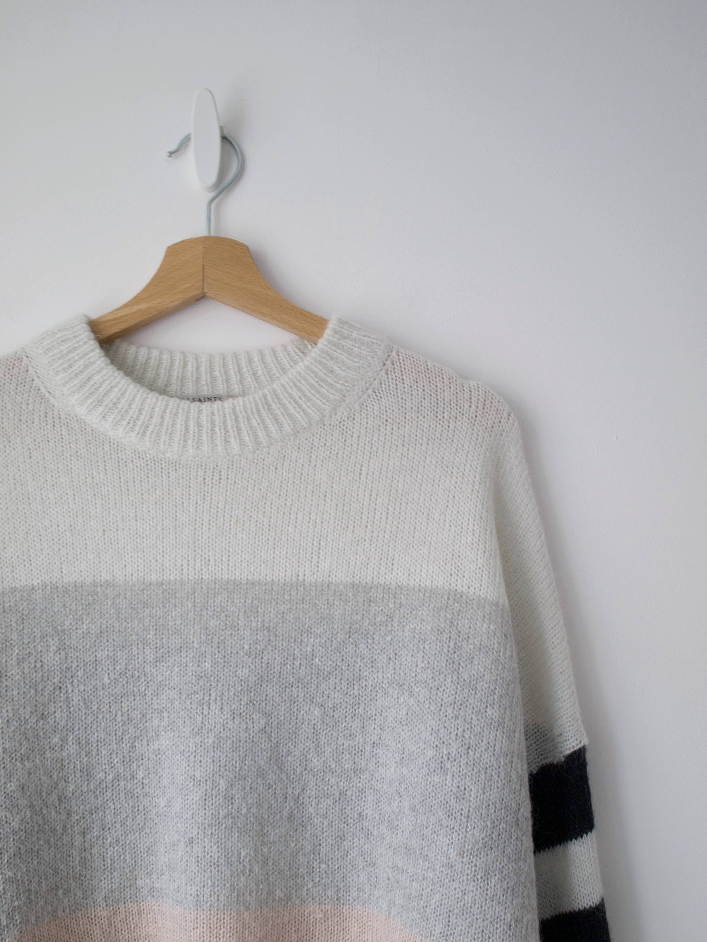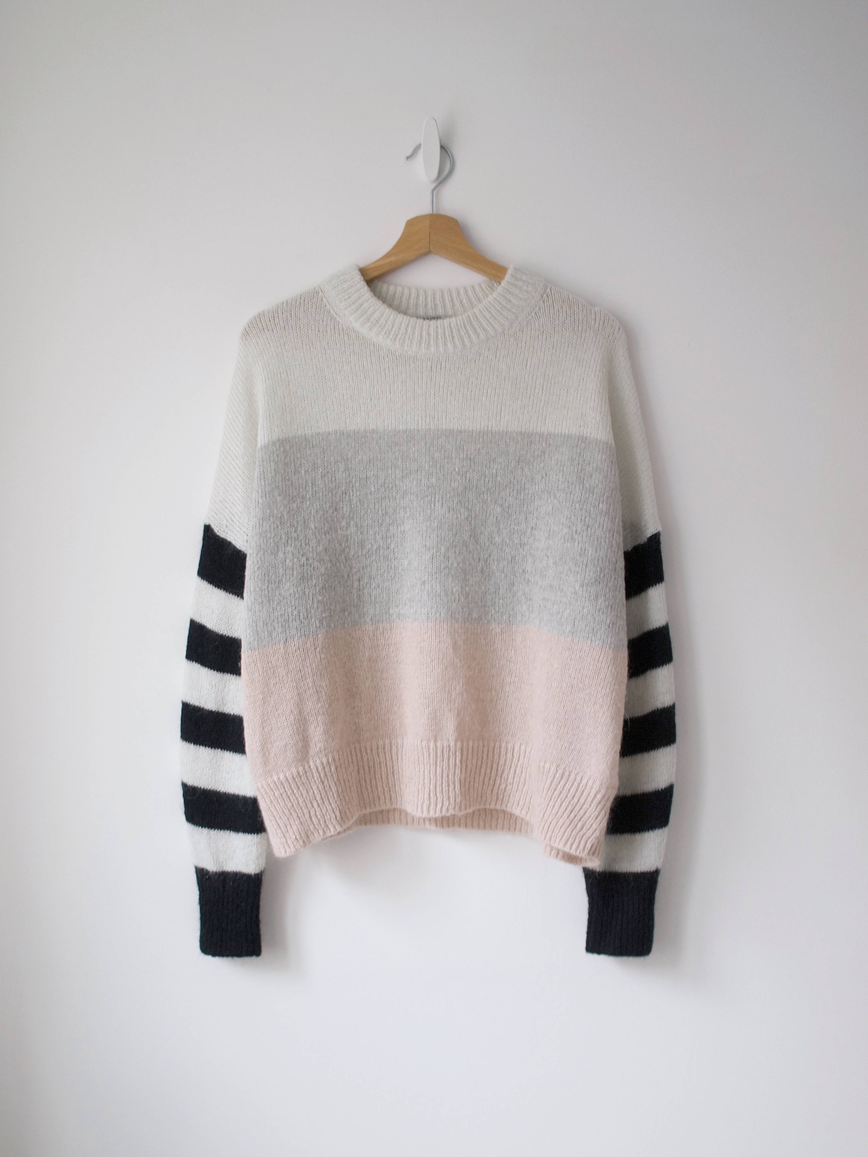 Wełniany sweter w prążki. Skandynawska marka Cubus. Rozmiar z metki: L Skład: 100% wełna merino Stan: bez wad Szerokość w klatce 50 cm Długośćcałkowita 59 cm