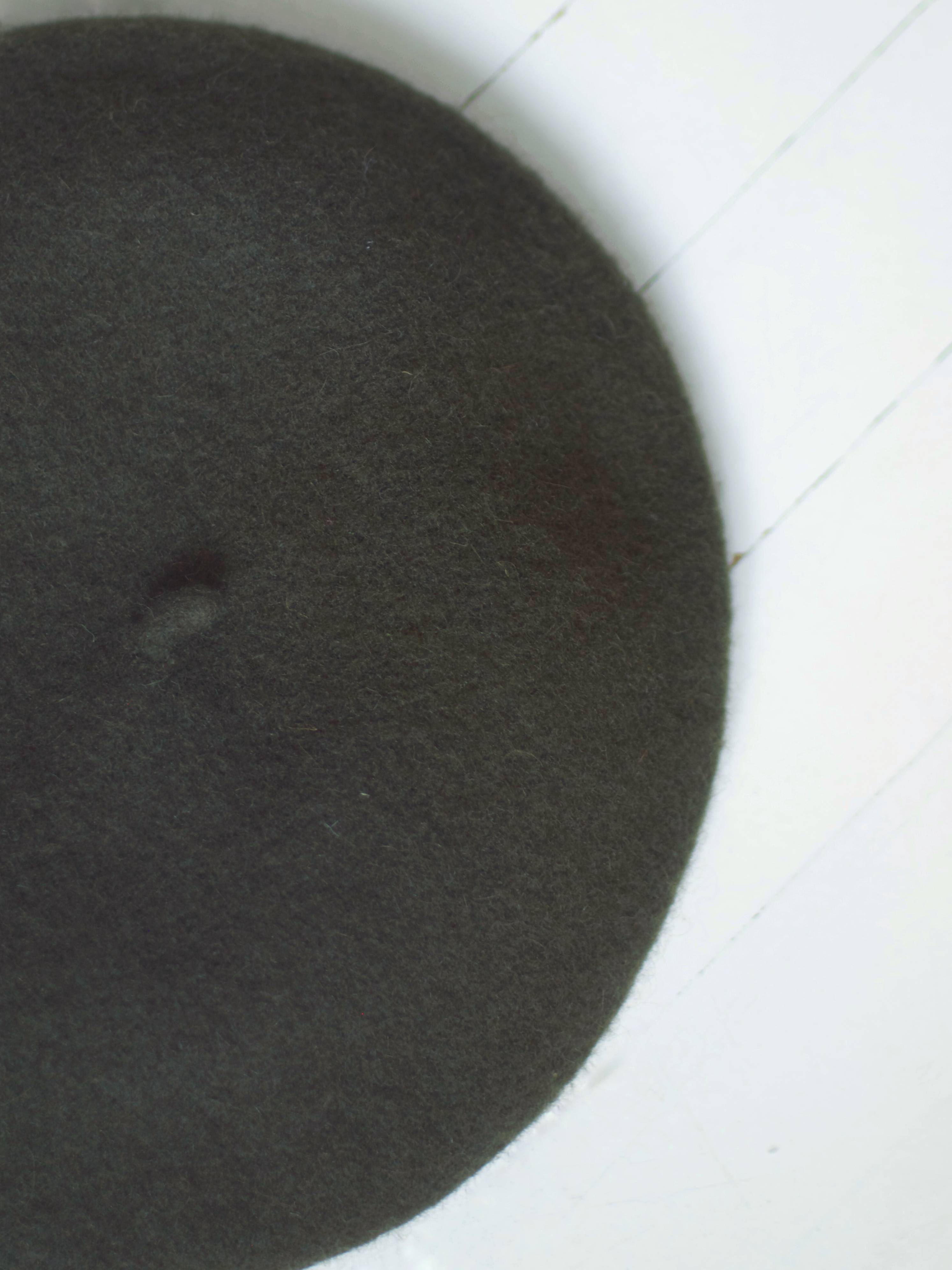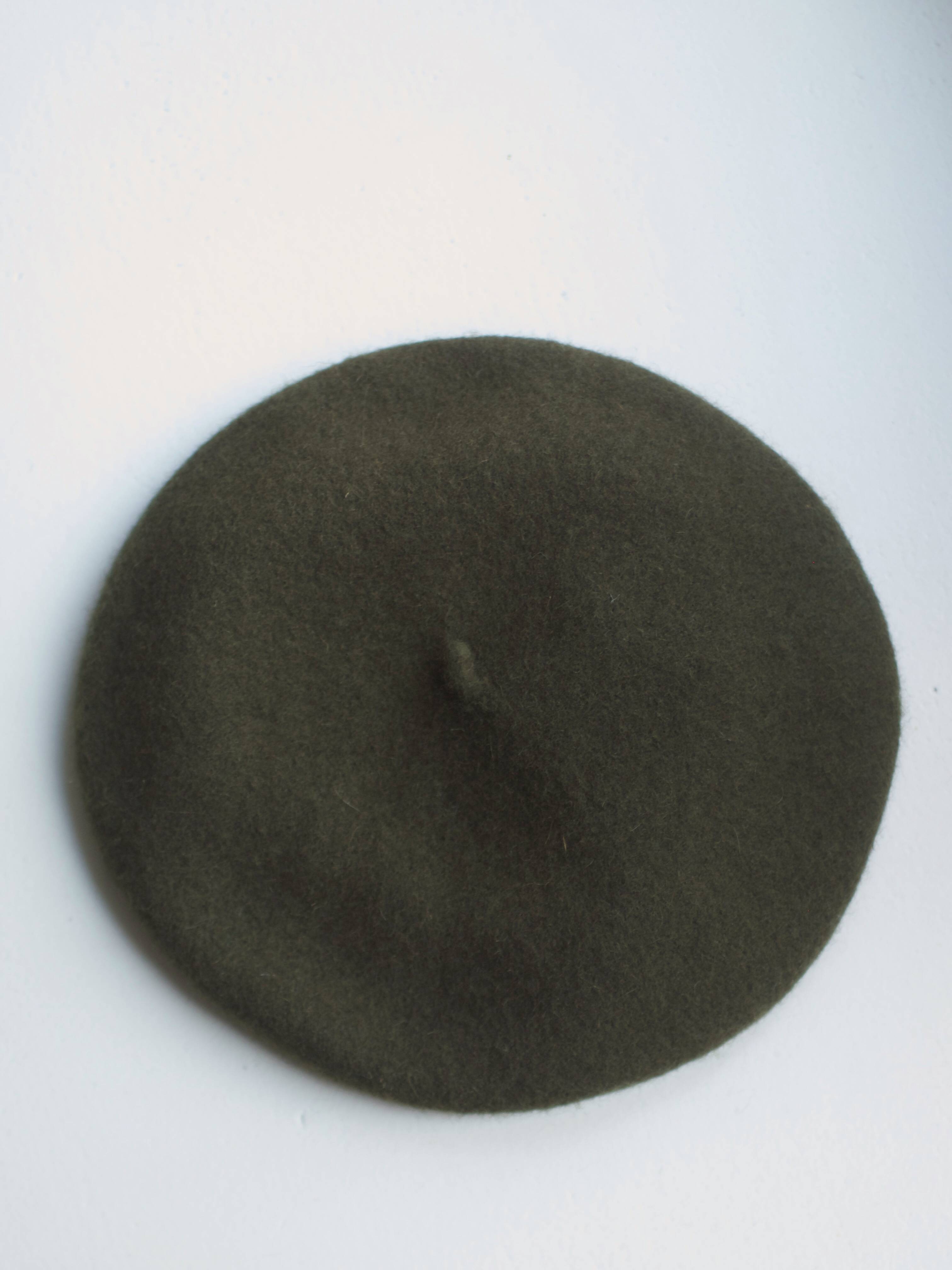 Wełniany beret w kolorze khaki. Bez wad. średnica: 27 cm