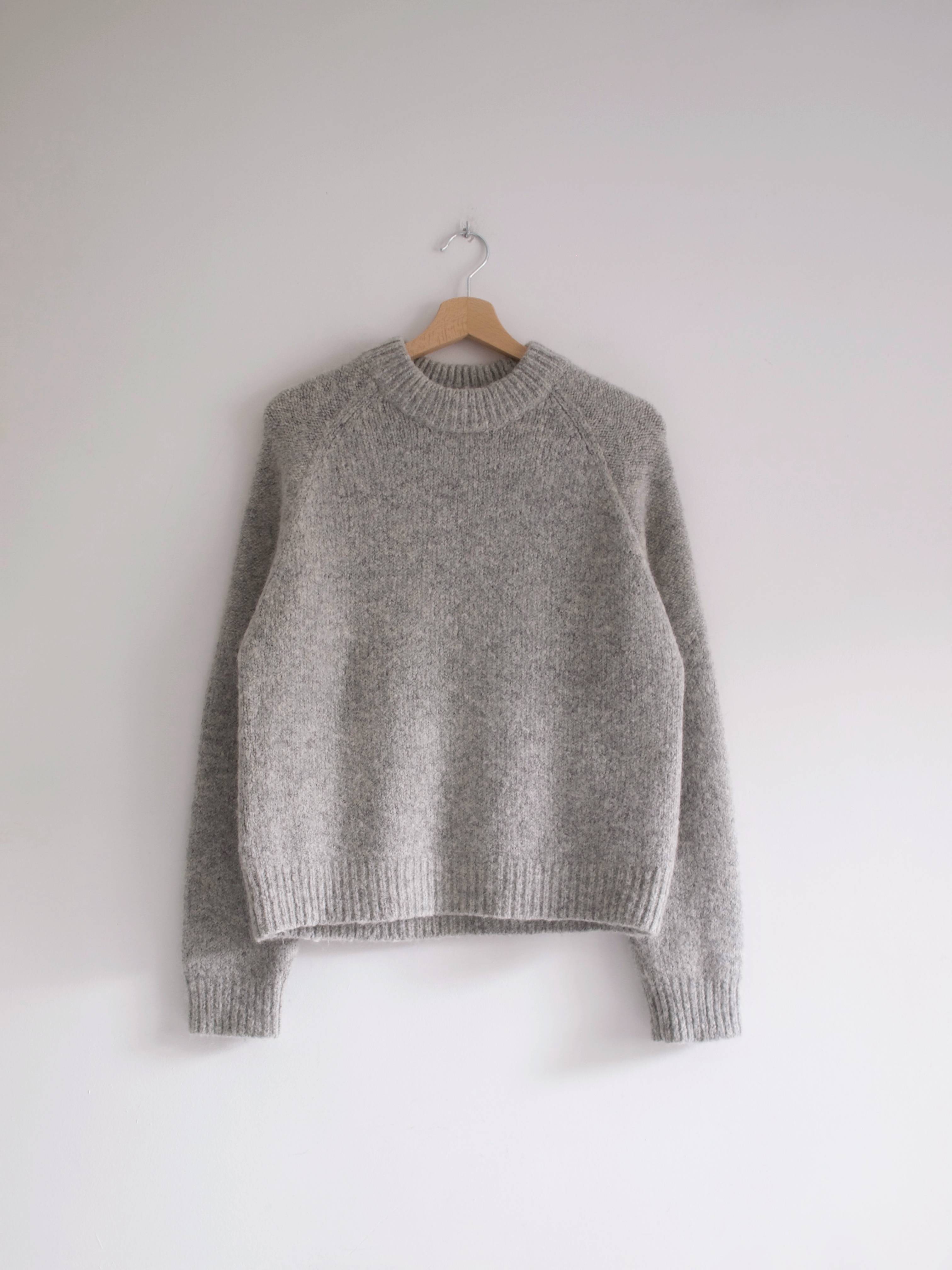 Rozmiar z metki: M, luźny fason Skład: 26% wełna, 26% alpaka, 34% akryl, 11% poliamid, 3% elastan Stan: bez wad Szerokość w klatce 53 cm Długość całkowita 58 cm