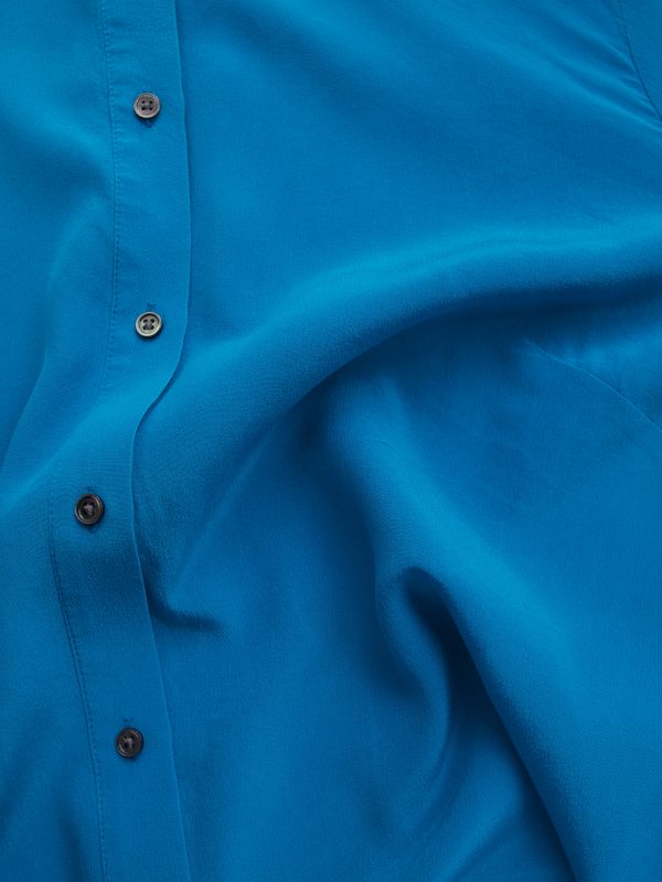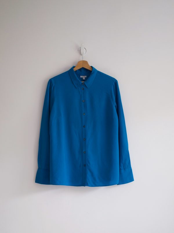 Koszula ekskluzywnej marki Jigsaw. W 100% wykonana z jedwabnej krepy. Materiał ma delikatne wyświecenia, charakterystyczne dla krepy, jednak nie są one zauważalne podczas noszenia.
