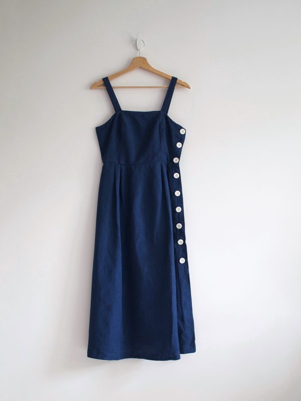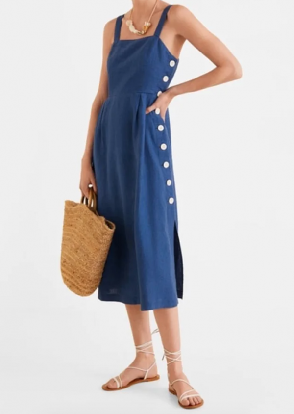 Letnia sukienka marki Mango, zapinana na guziki z boku.